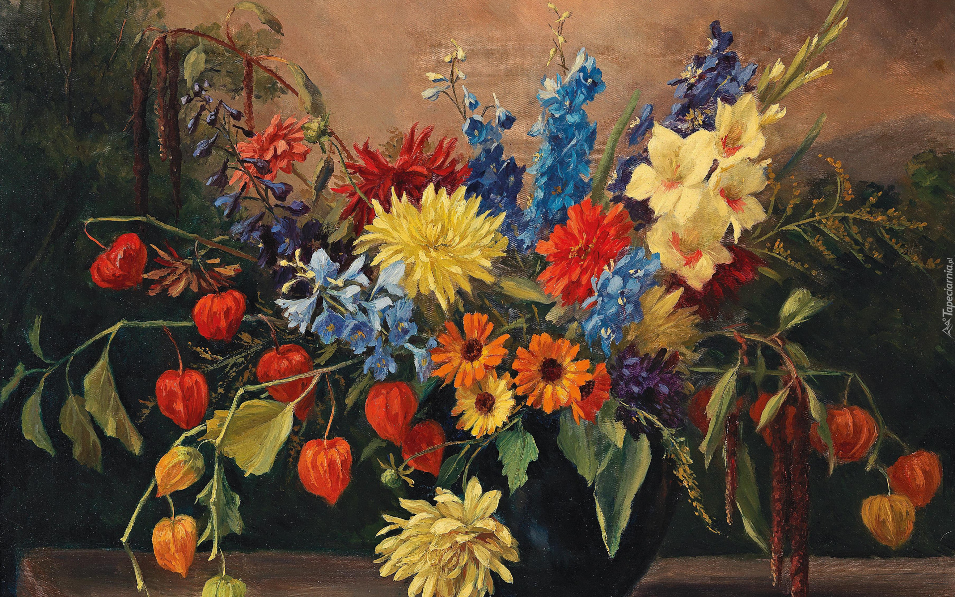 Edytor tapety: Obraz z bukietem kolorowych kwiatów