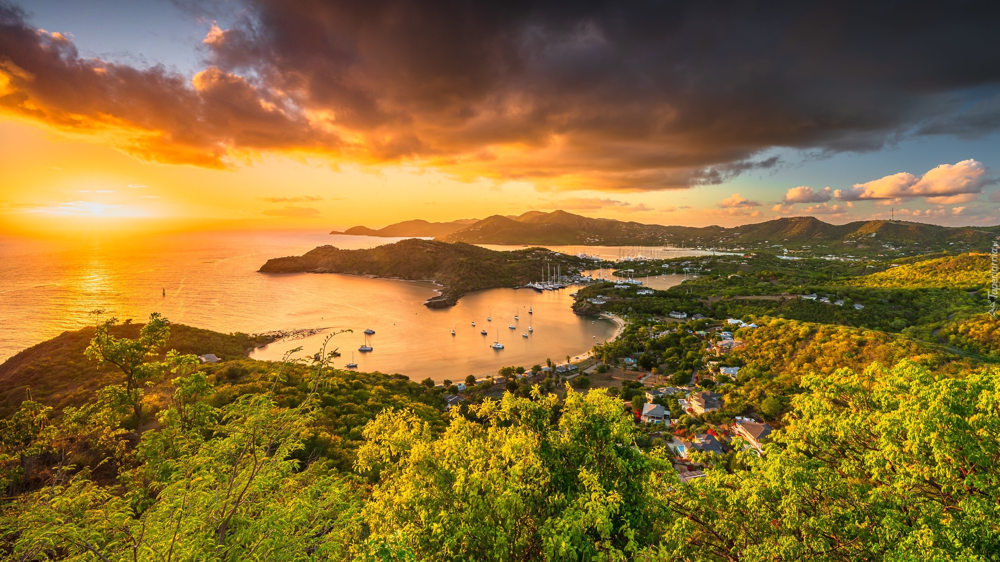 Edytor tapety: Zachód słońca nad zatoką w Antigua