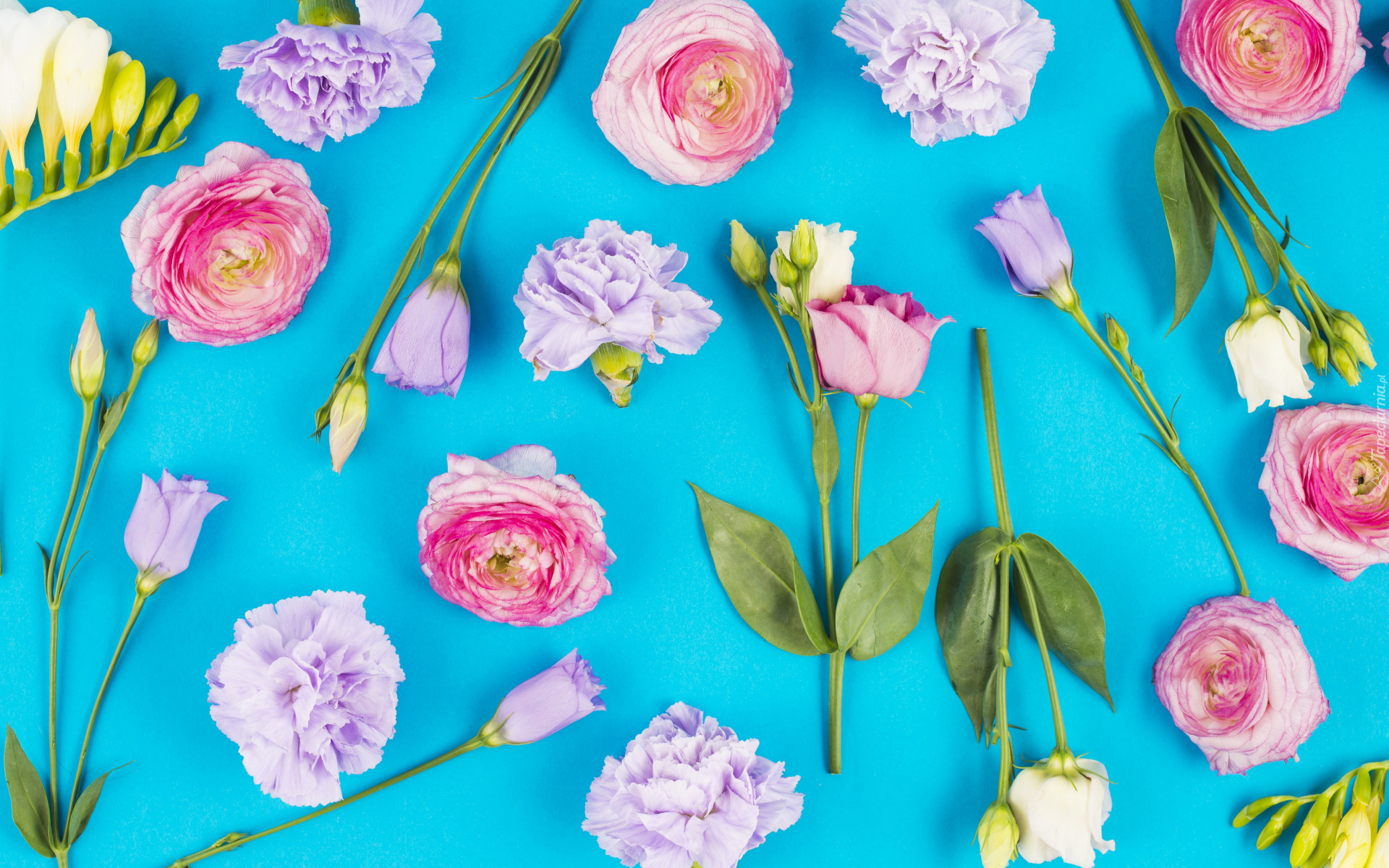 Edytor tapety: Rozłożone kwiaty na niebieskim tle