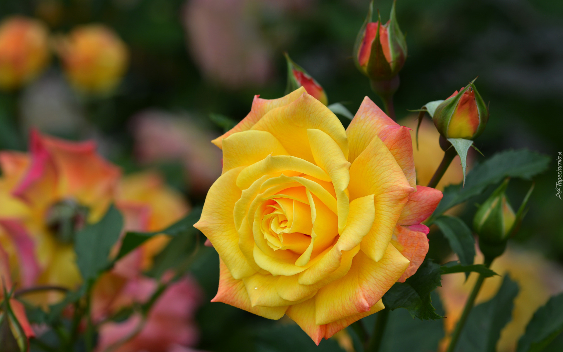 Edytor tapety: Żółta rozkwitnięta róża z pąkami