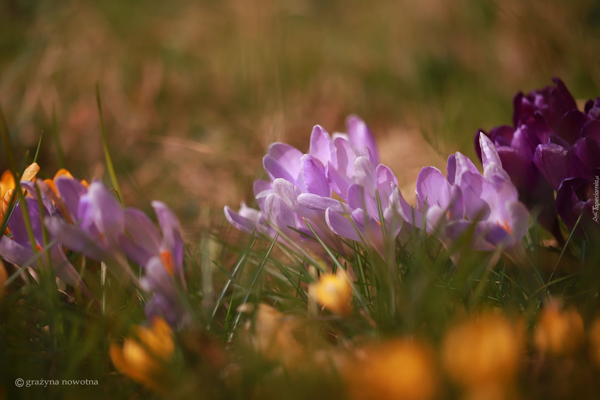Edytor tapety: Kępki krokusów na rozmytym tle