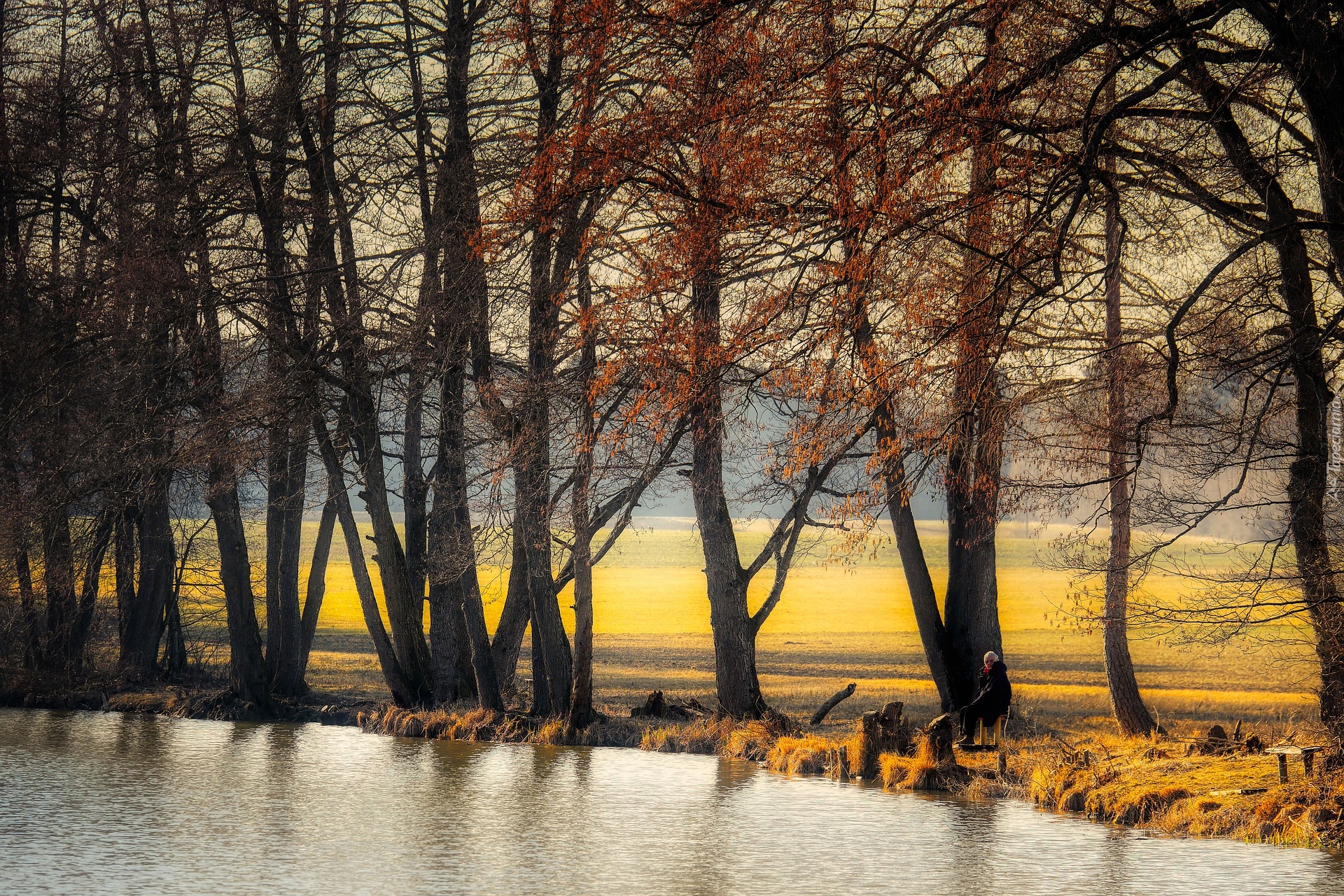 Edytor tapety: Jesienne drzewa nad rzeką