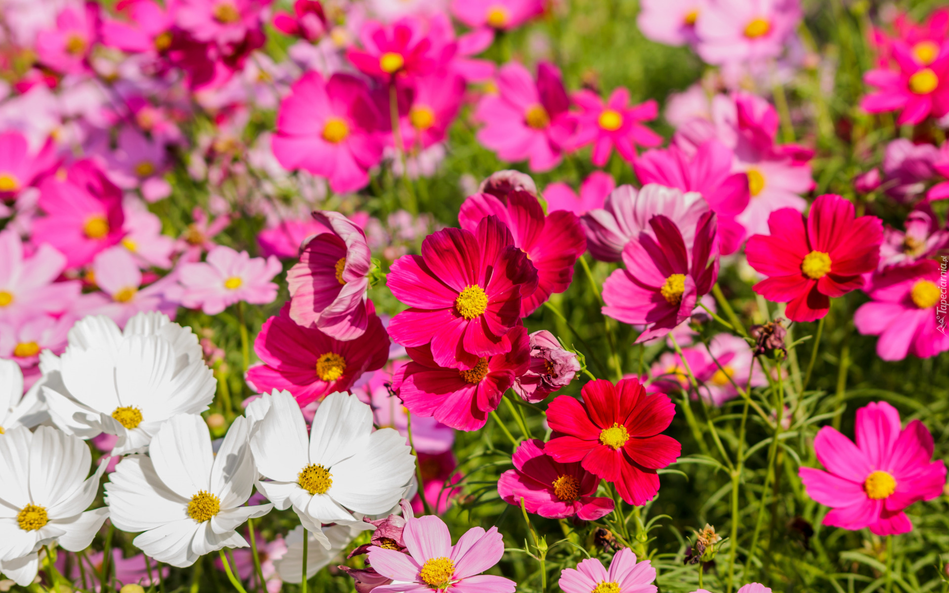 Edytor tapety: Kolorowe kosmee w słońcu