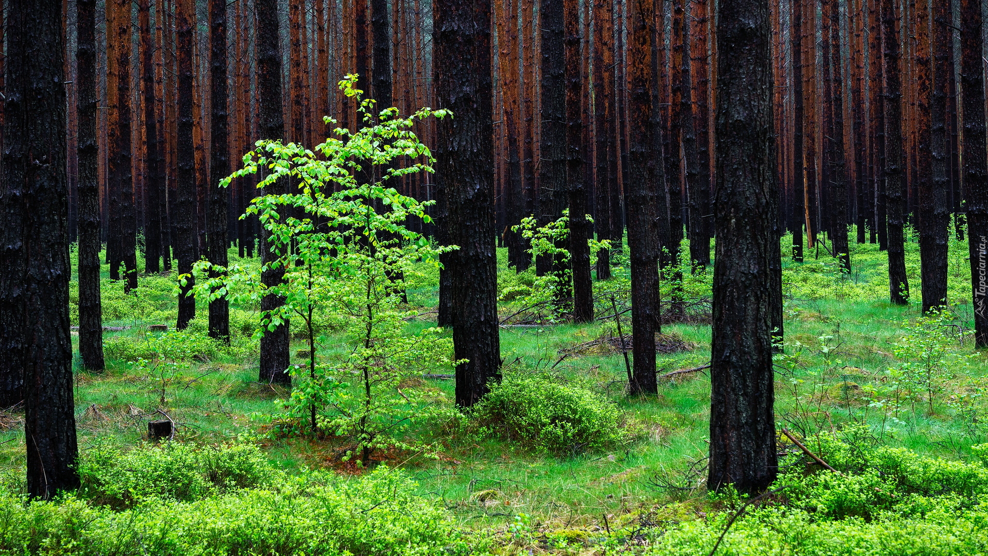 Edytor tapety: Zielone rośliny w wiosennym lesie