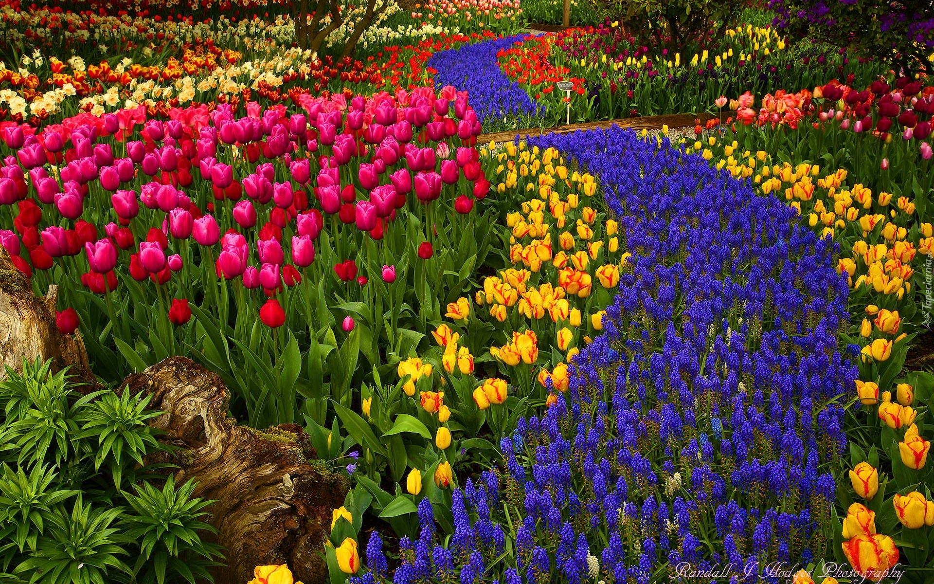 Edytor tapety: Kolorowe kwiaty w ogrodzie