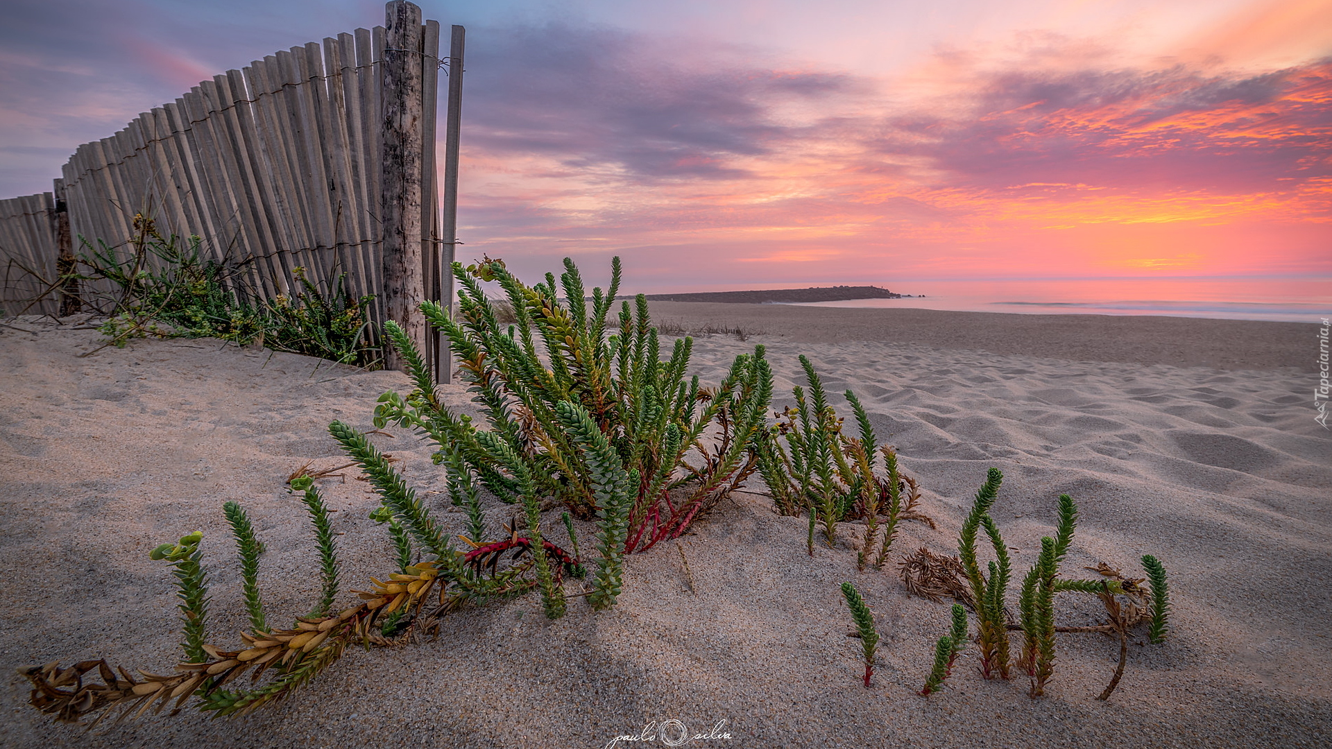 Edytor tapety: Rośliny i płot na plaży w Espinho