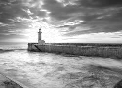 Edytor tapety: Latarnia morska Farolim de Felgueiras na tle zachodu słońca