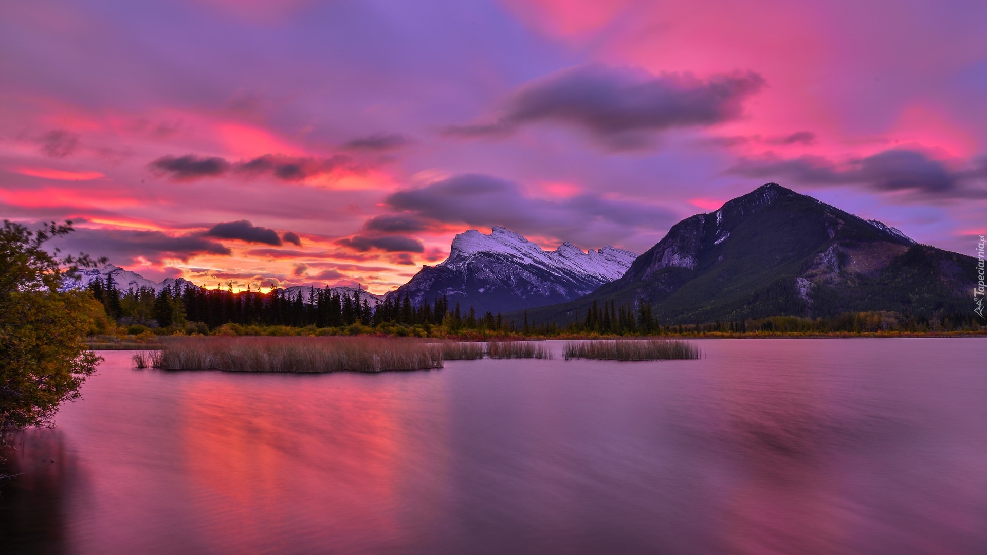Edytor tapety: Jezioro Vermilion Lake na tle gór Canadian Rockies
