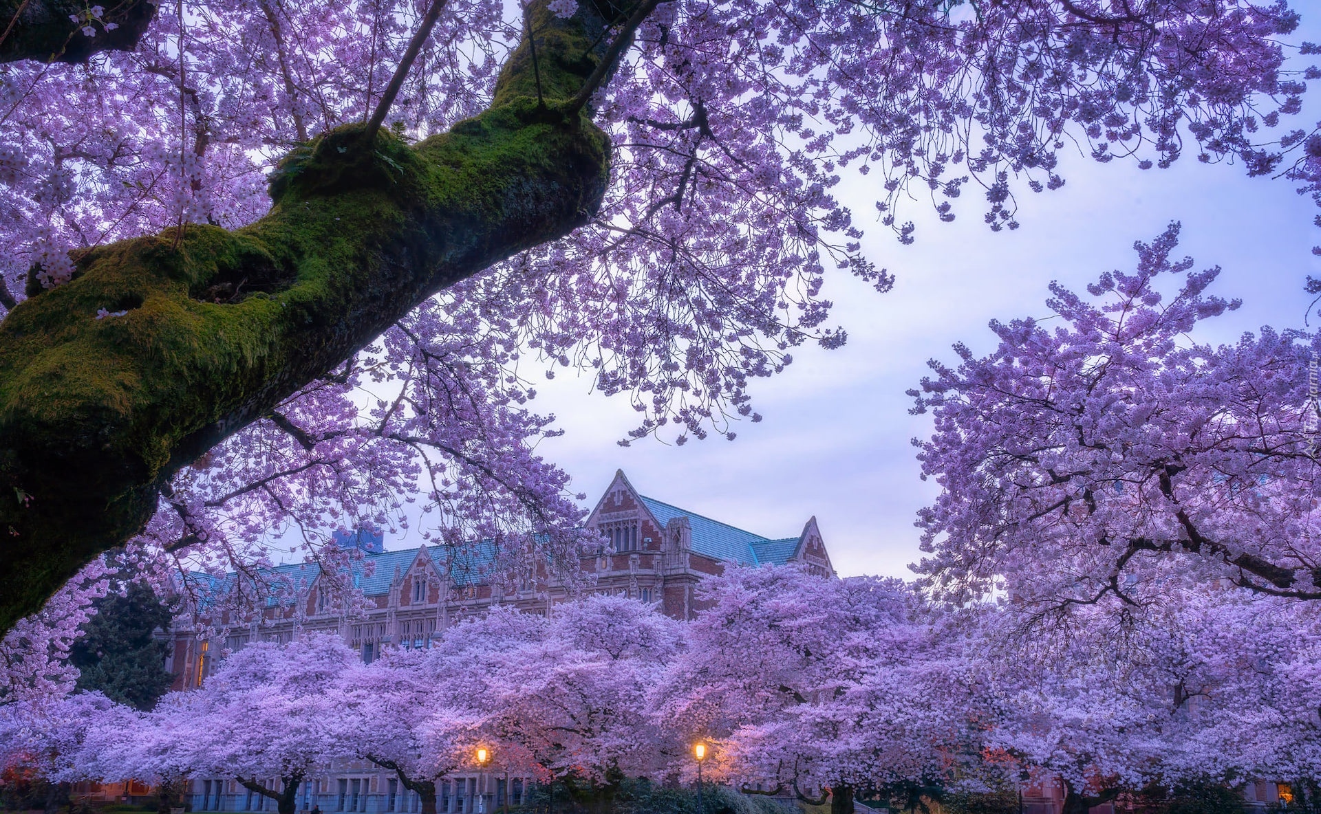 Edytor tapety: Kwitnące drzewa na terenie Uniwersytetu Quad w Waszyngtonie