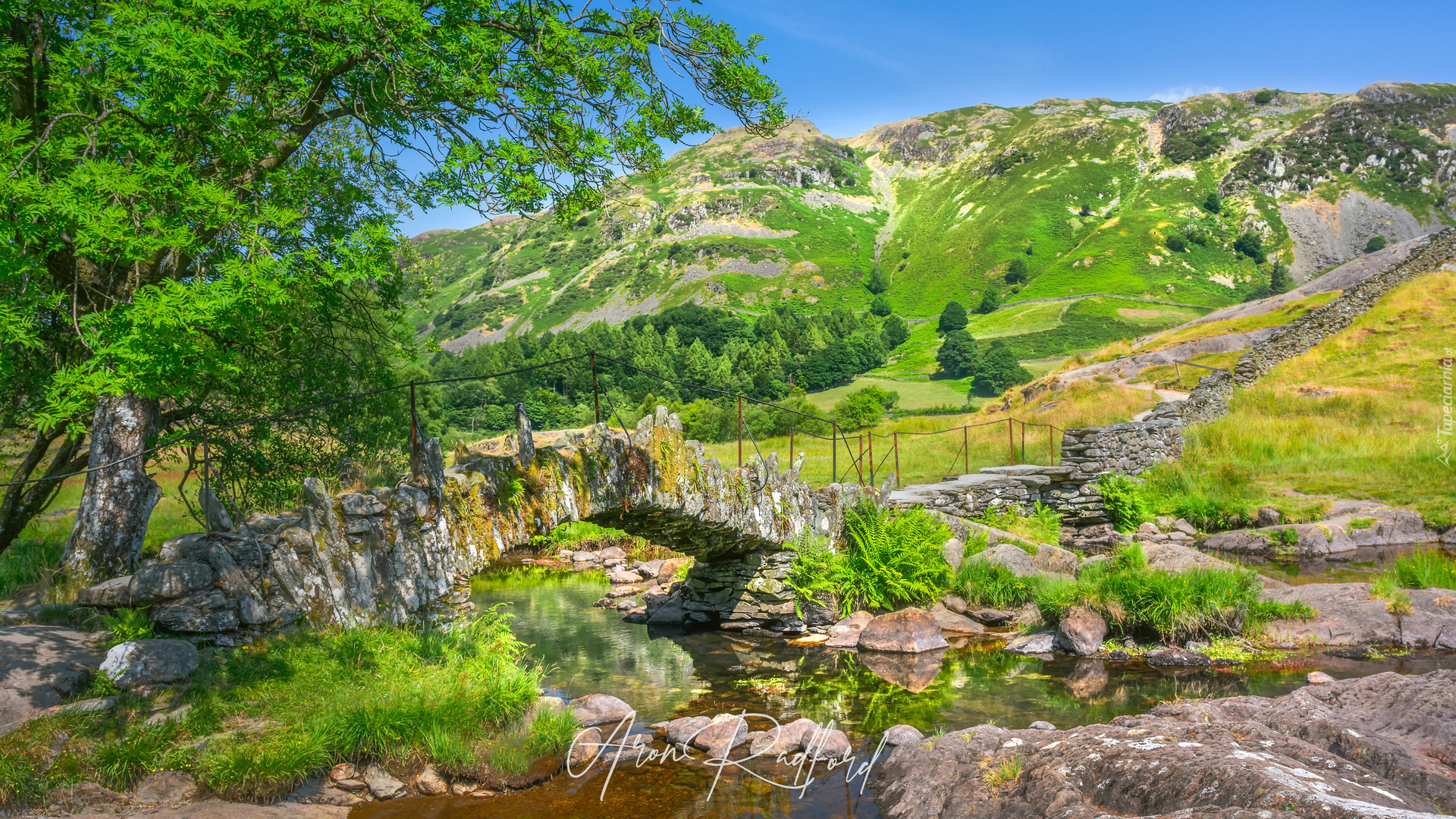 Edytor tapety: Kamienny mostek nad rzeką w górach