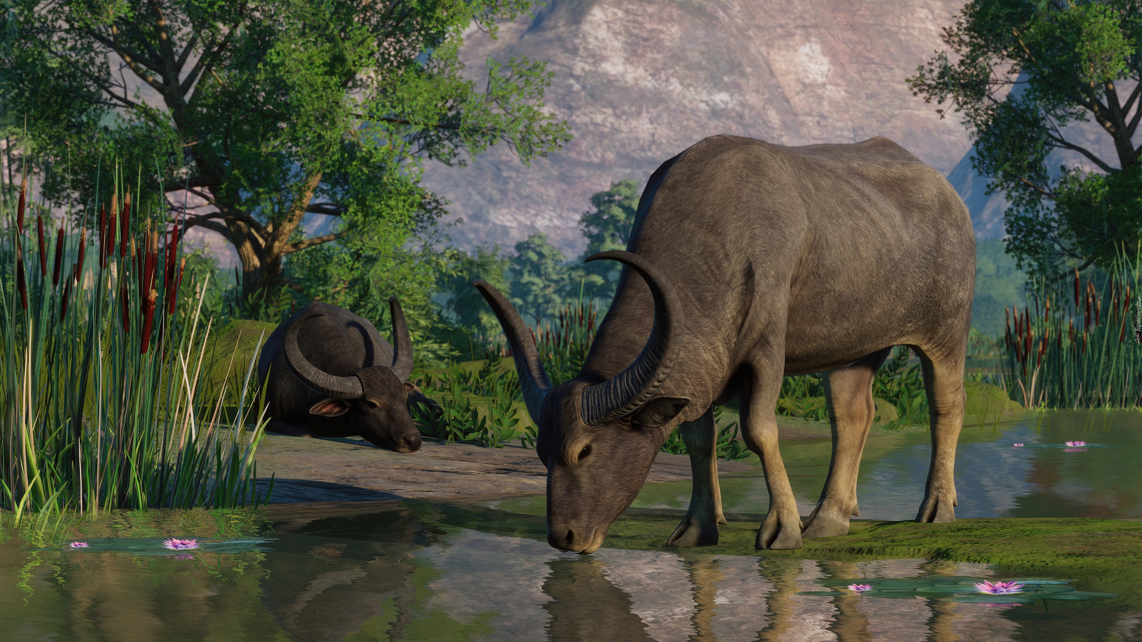 Edytor tapety: Dwa bawoły w grze Planet Zoo