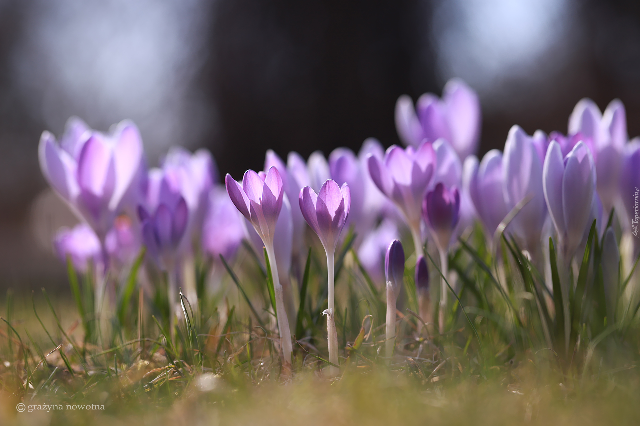 Edytor tapety: Rozkwitające fioletowe krokusy