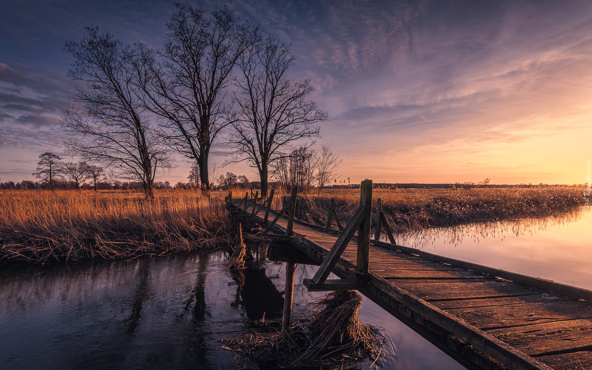 Edytor tapety: Drewniana kładka nad rzeką Bzura