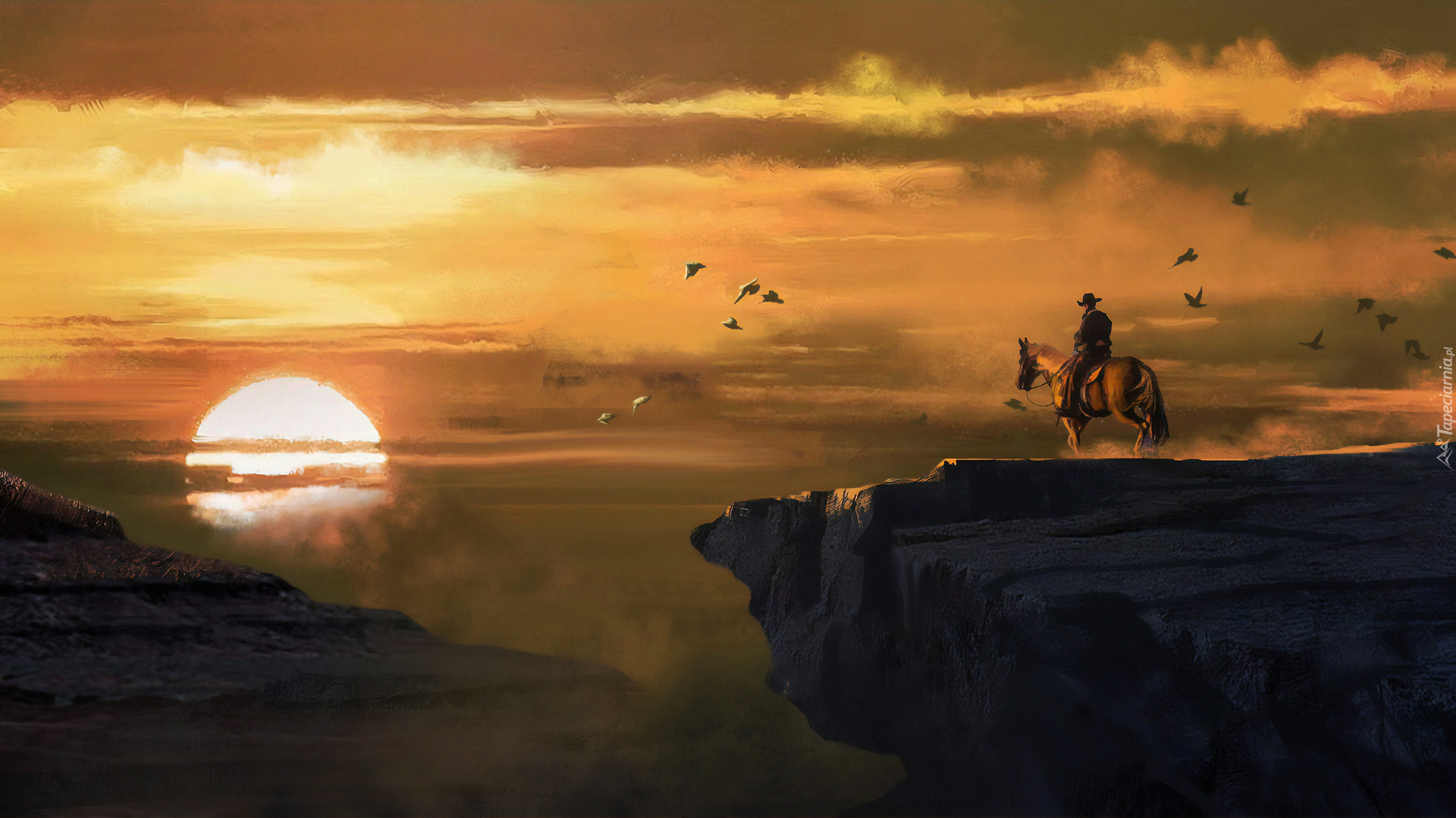 Edytor tapety: Kowboj na skale z gry Red Dead Redemption