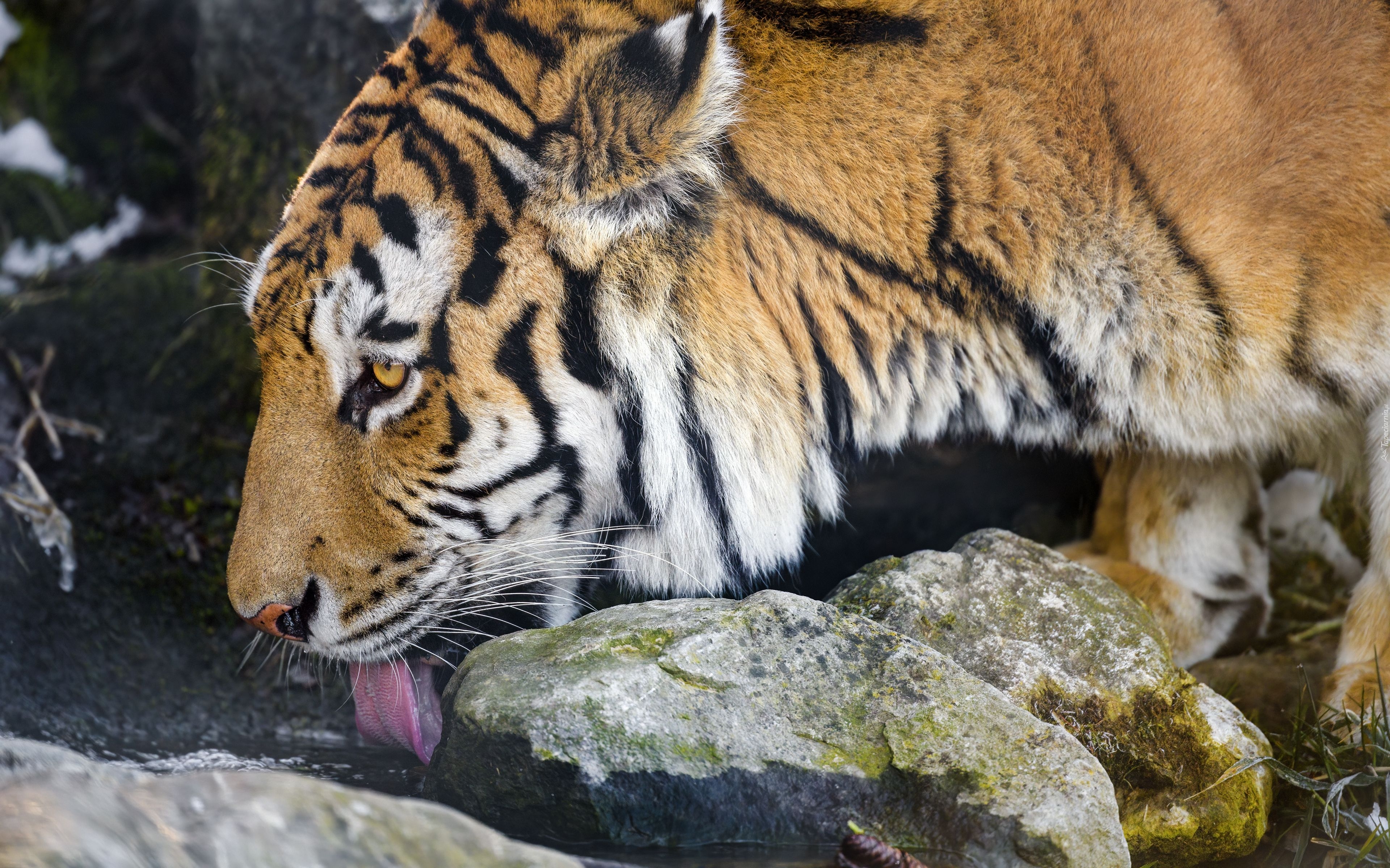 Edytor tapety: Tygrys pijący wodę ze strumyka