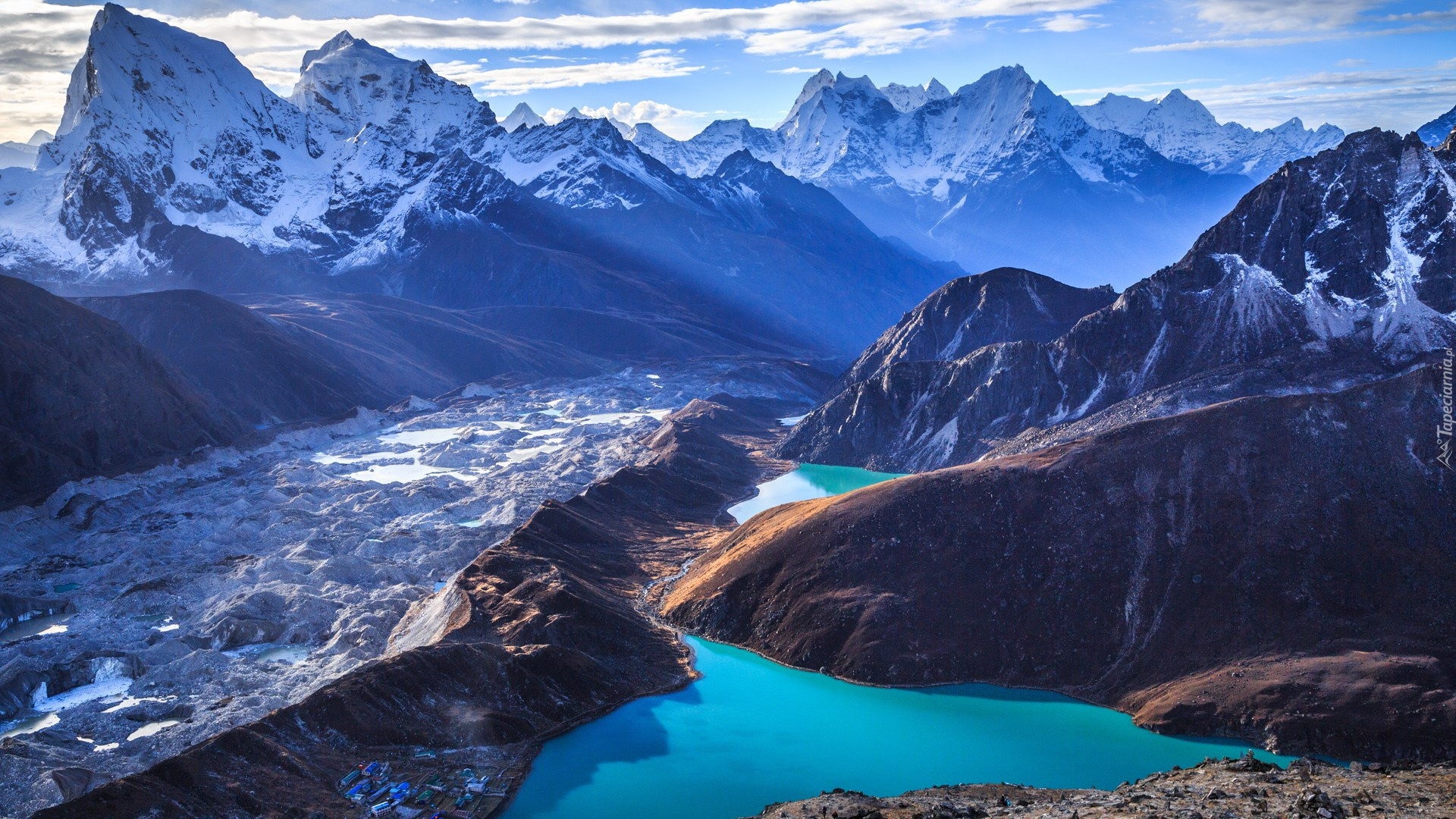 Edytor tapety: Lodowiec Ngozumpa i jezioro Gokyo w Nepalu