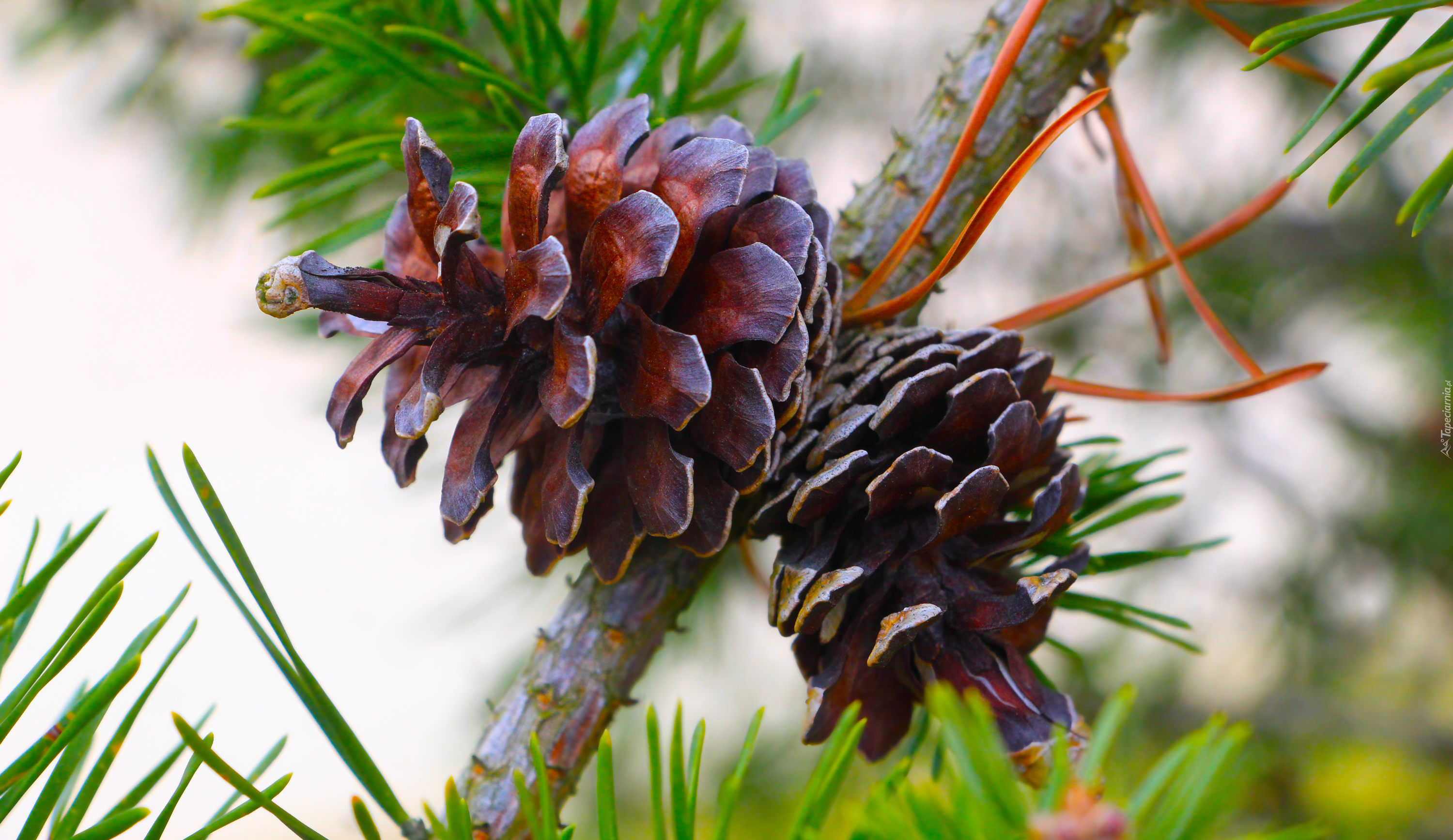 Edytor tapety: Dwie szyszki na gałązce sosny