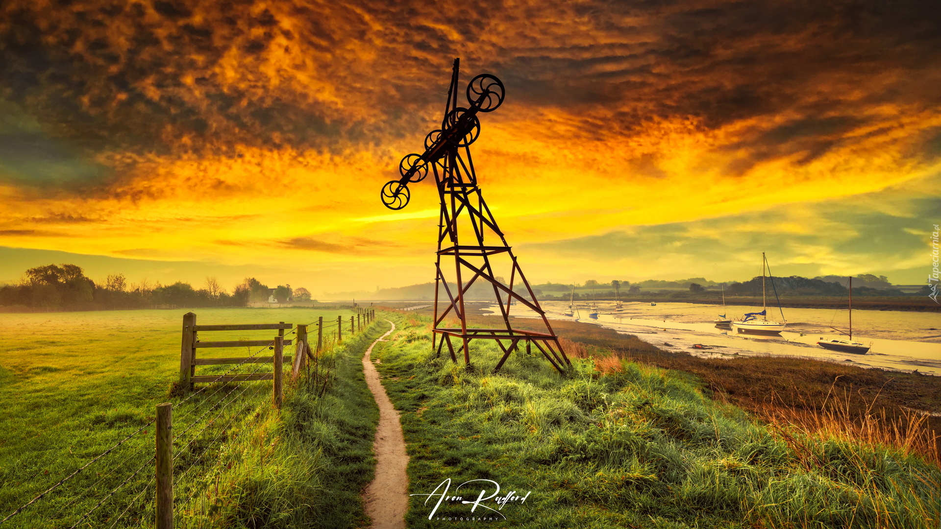 Edytor tapety: Koła linowe na polu nad rzeką Alresford Creek