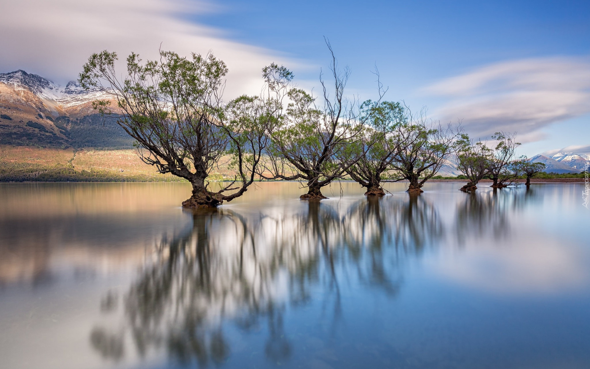 Edytor tapety: Wierzby w jeziorze Wakatipu