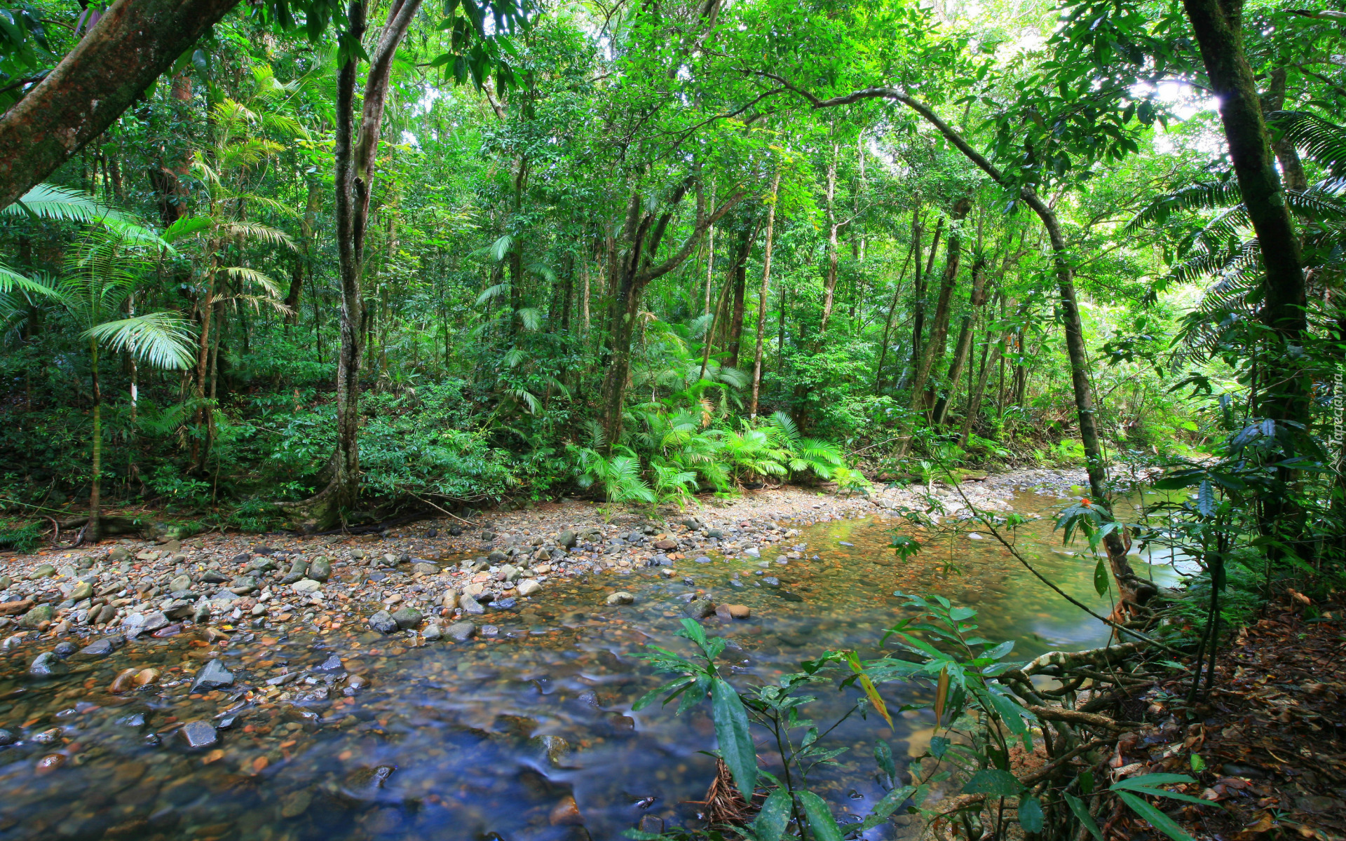 Edytor tapety: Zielone drzewa przy leśnym strumieniu