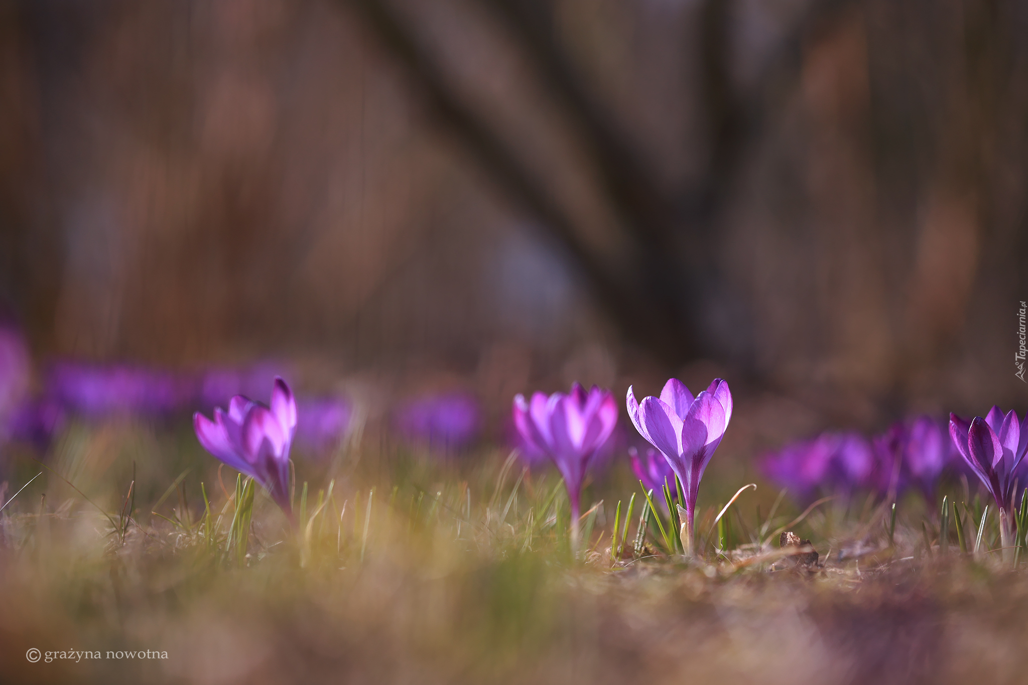 Edytor tapety: Rozświetlone fioletowe krokusy w zbliżeniu