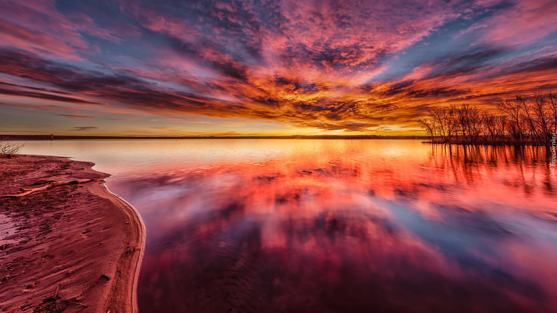 Edytor tapety: Wschód słońca z kolorowym niebem nad Jeziorem Chatfield