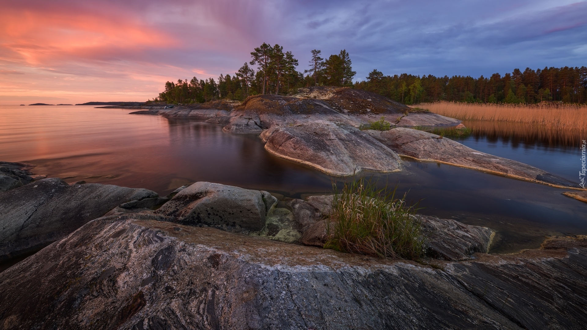 Edytor tapety: Skały nad jeziorem Ładoga o zachodzie słońca