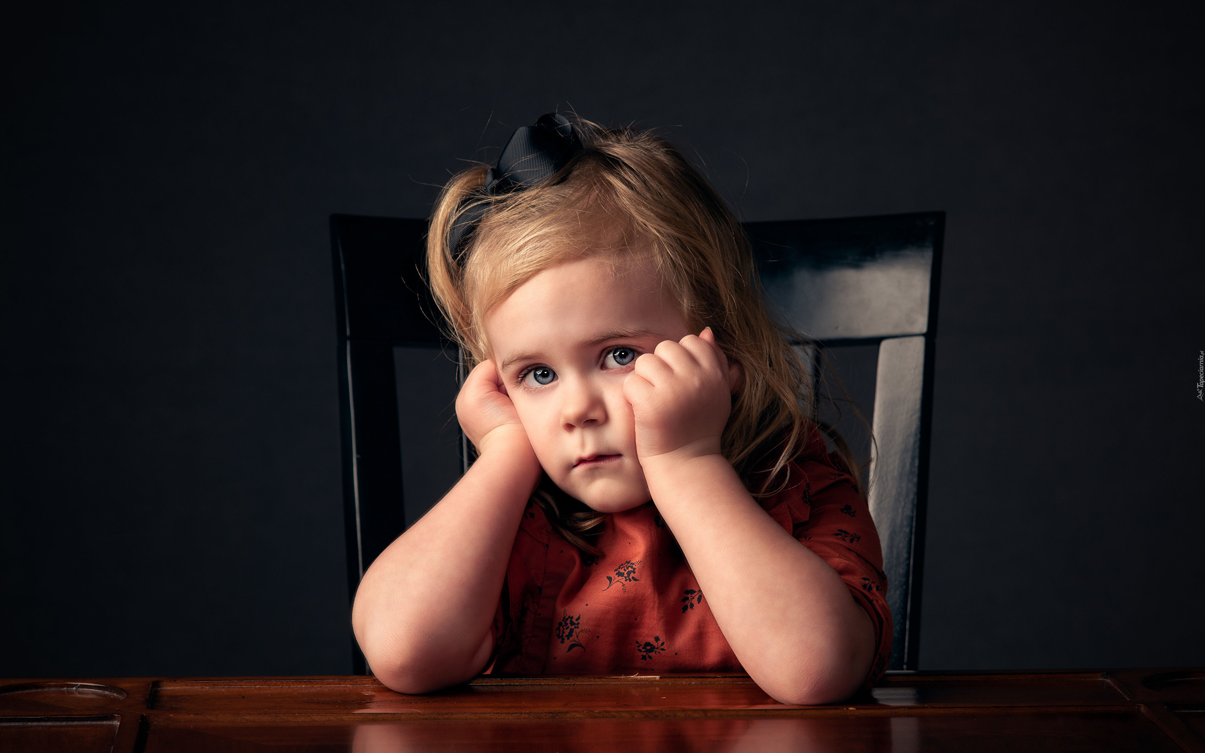 Edytor tapety: Smutna dziewczynka przy stole