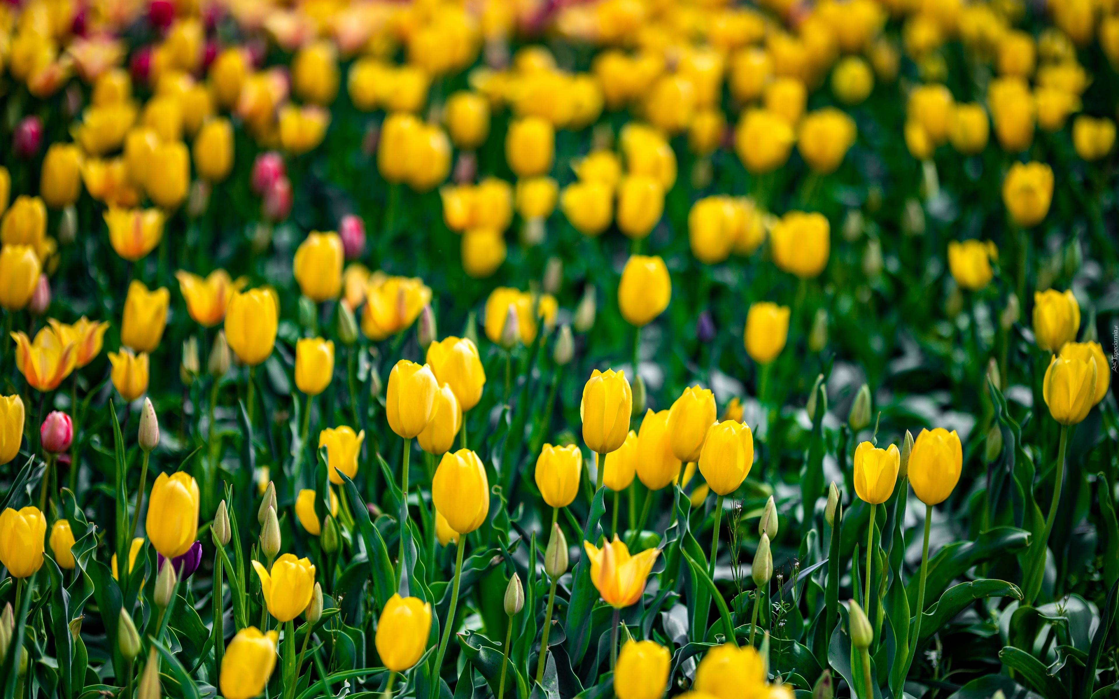 Edytor tapety: Pole rozkwitających żółtych tulipanów