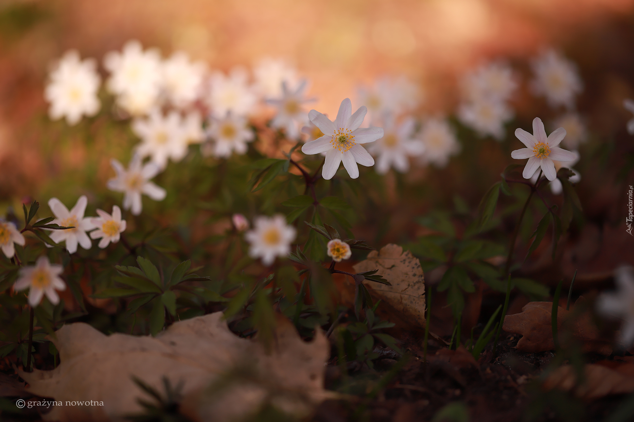 Edytor tapety: Białe kwiaty zawilca gajowego