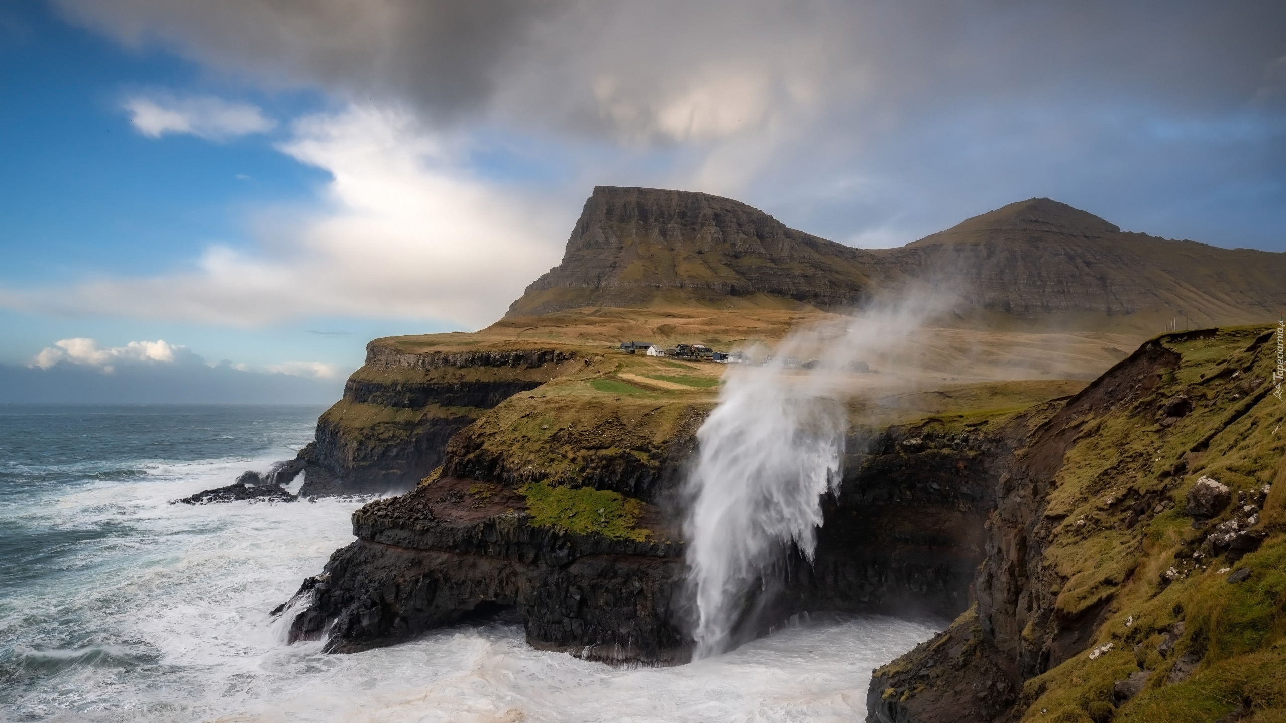 Edytor tapety: Wodospad Mulafossur na Wyspach Owczych