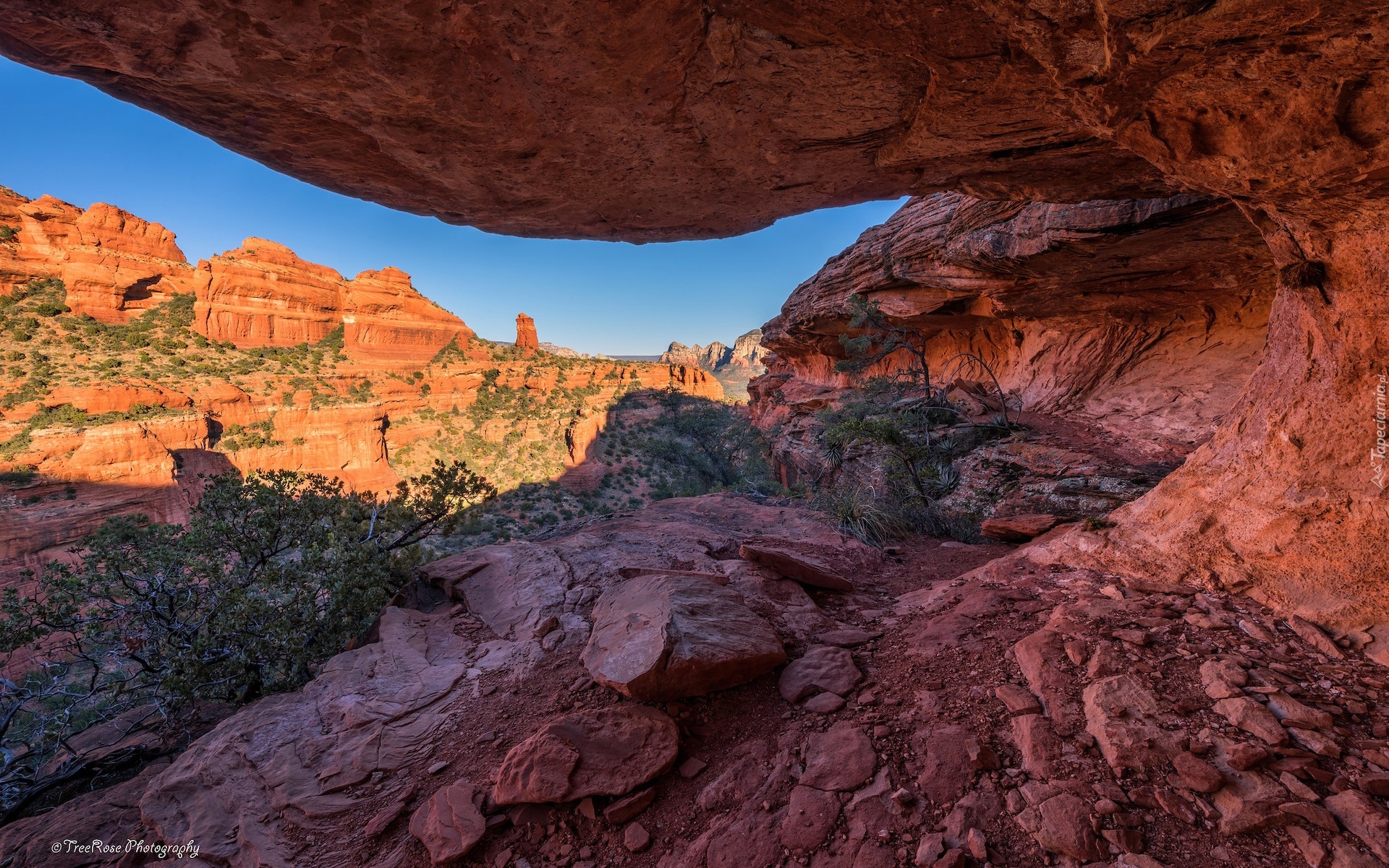 Edytor tapety: Widok z jaskini na czerwone skały w Sedonie