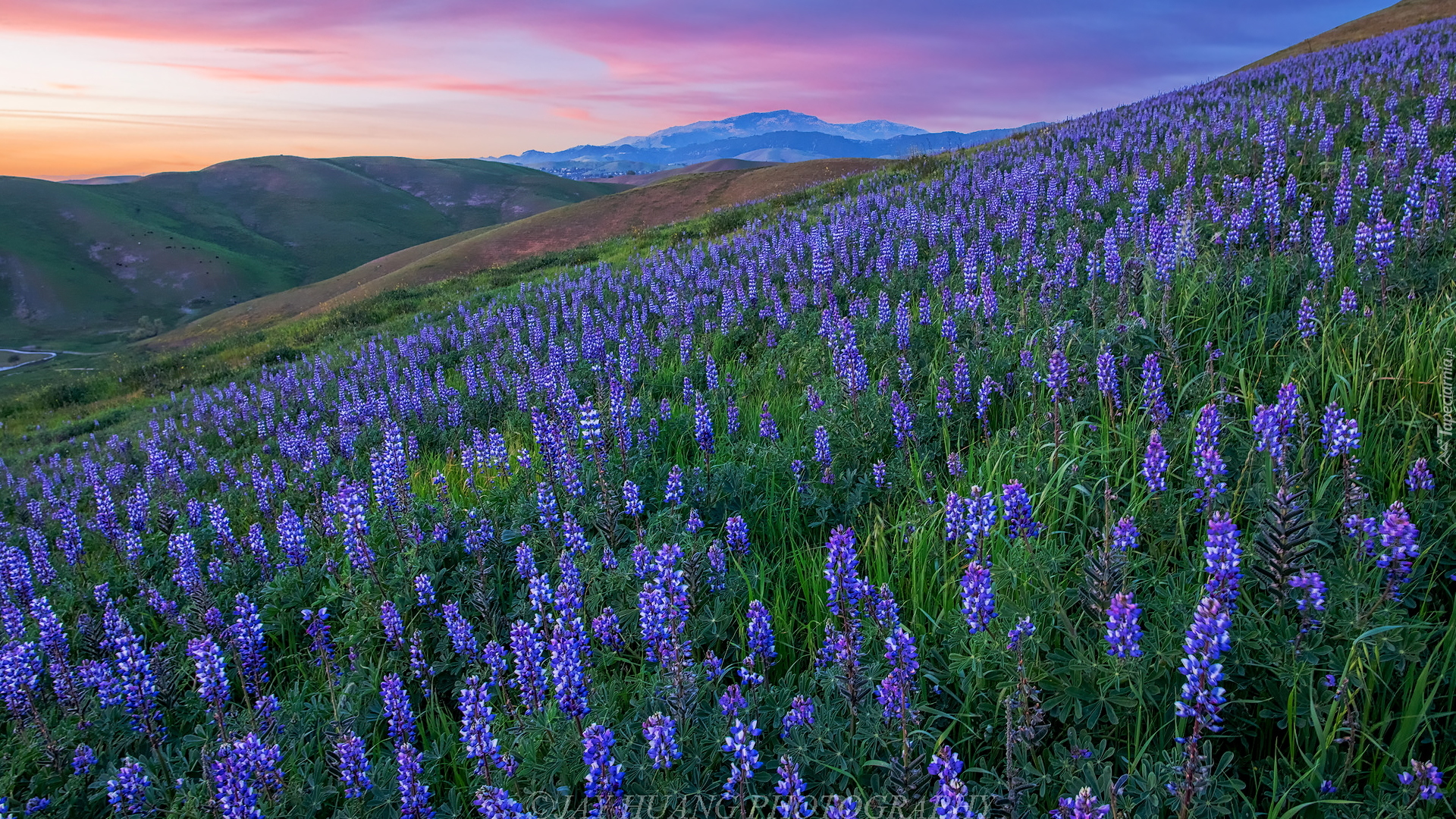 Edytor tapety: Niebieskie łubiny na wzgórzu doliny Livermore Valley