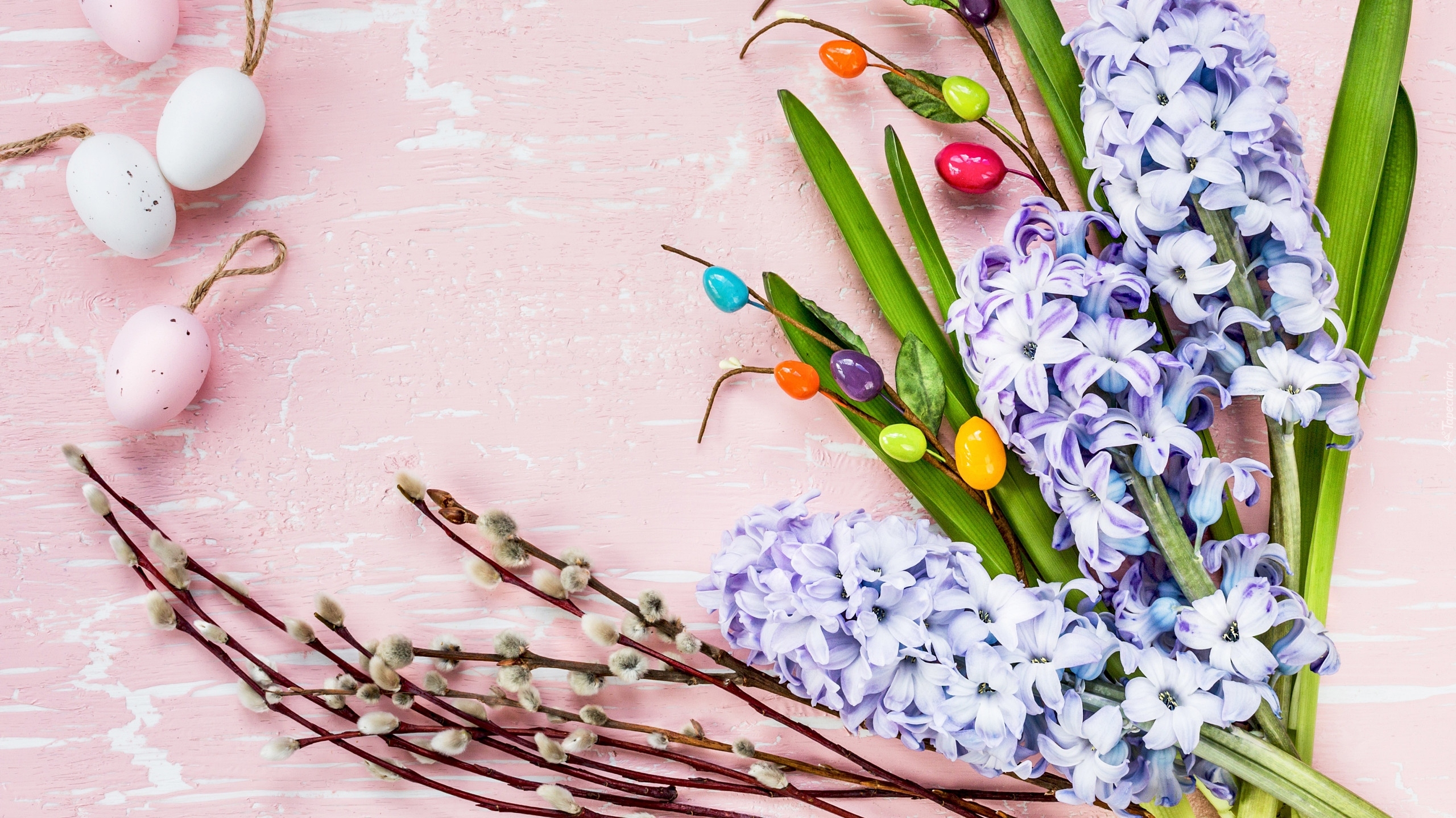Edytor tapety: Jajka obok hiacyntów i bazi
