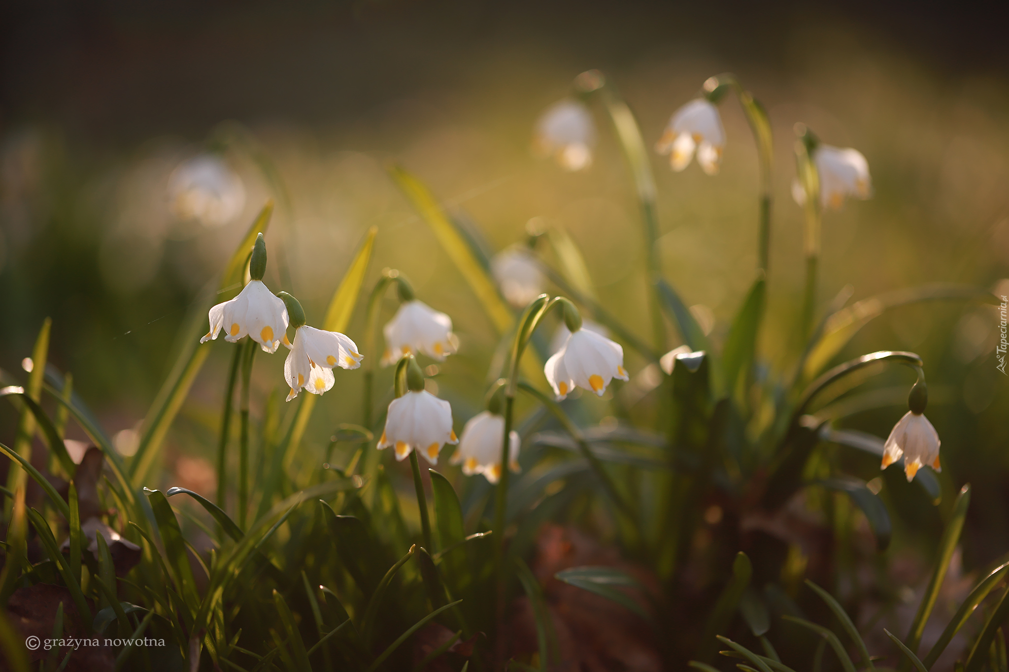 Edytor tapety: Białe śnieżyce w trawie