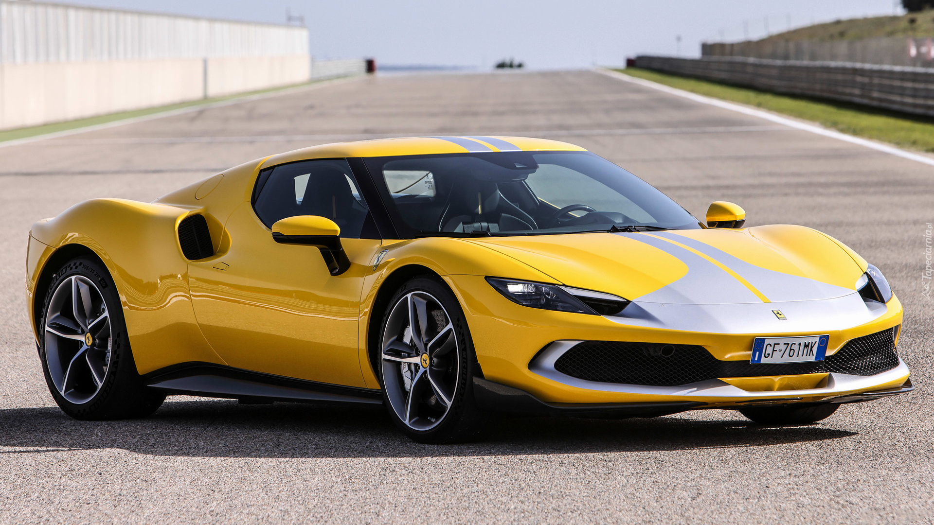 Edytor tapety: Żółte Ferrari 296 GTB Assetto Fiorano