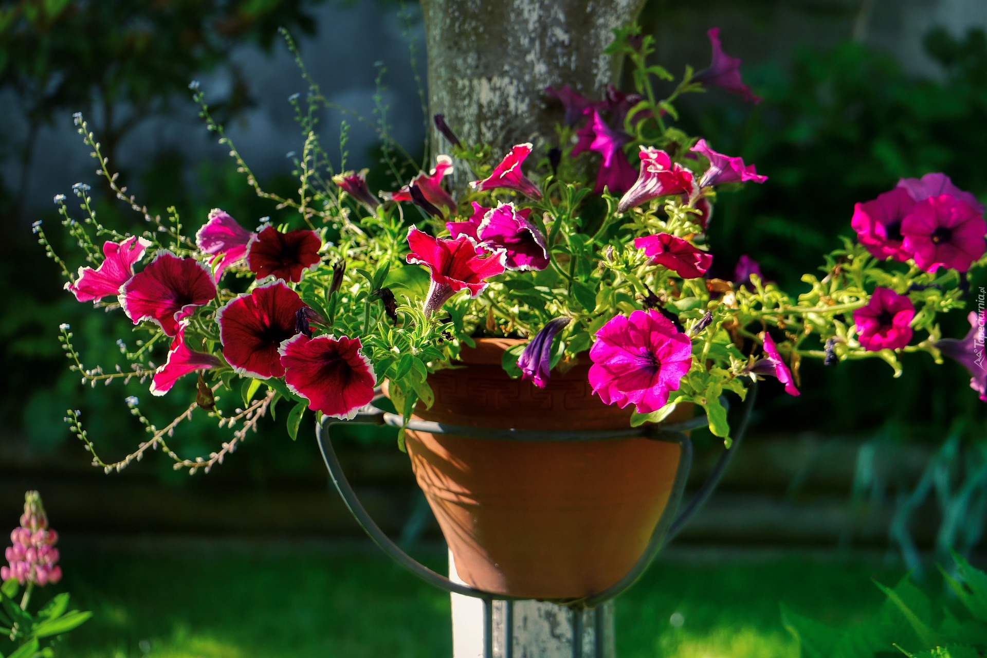 Edytor tapety: Kwitnące petunie w doniczce