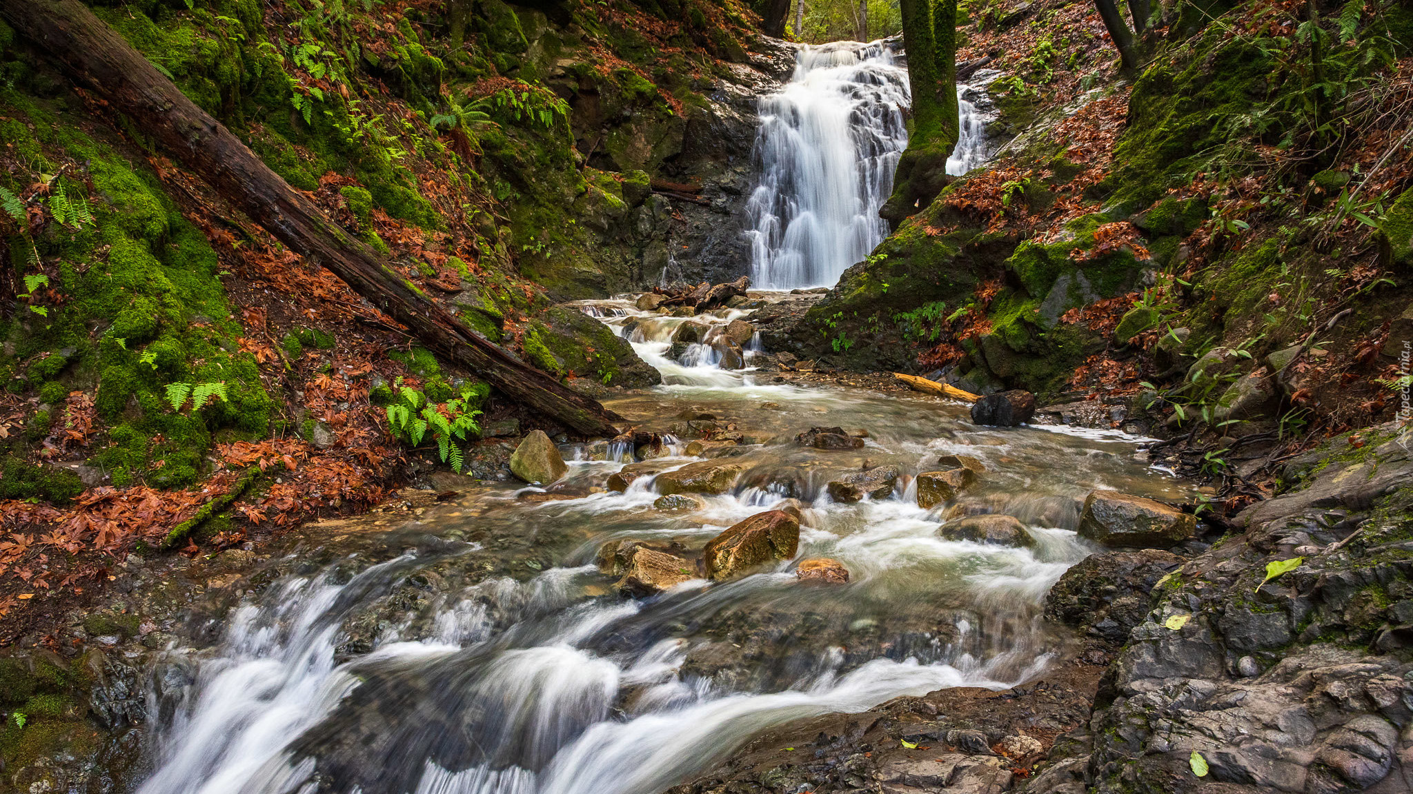 Edytor tapety: Opadłe liście na skarpie przy wodospadzie