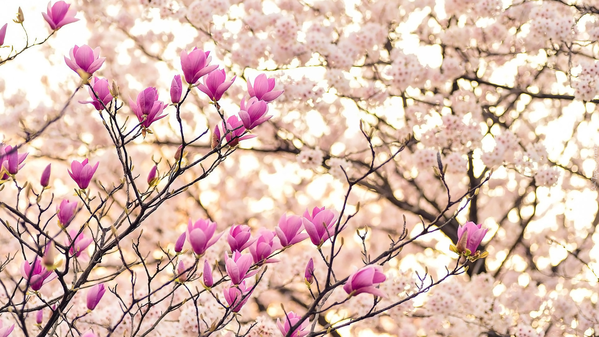 Edytor tapety: Różowe magnolie i pąki na gałązkach