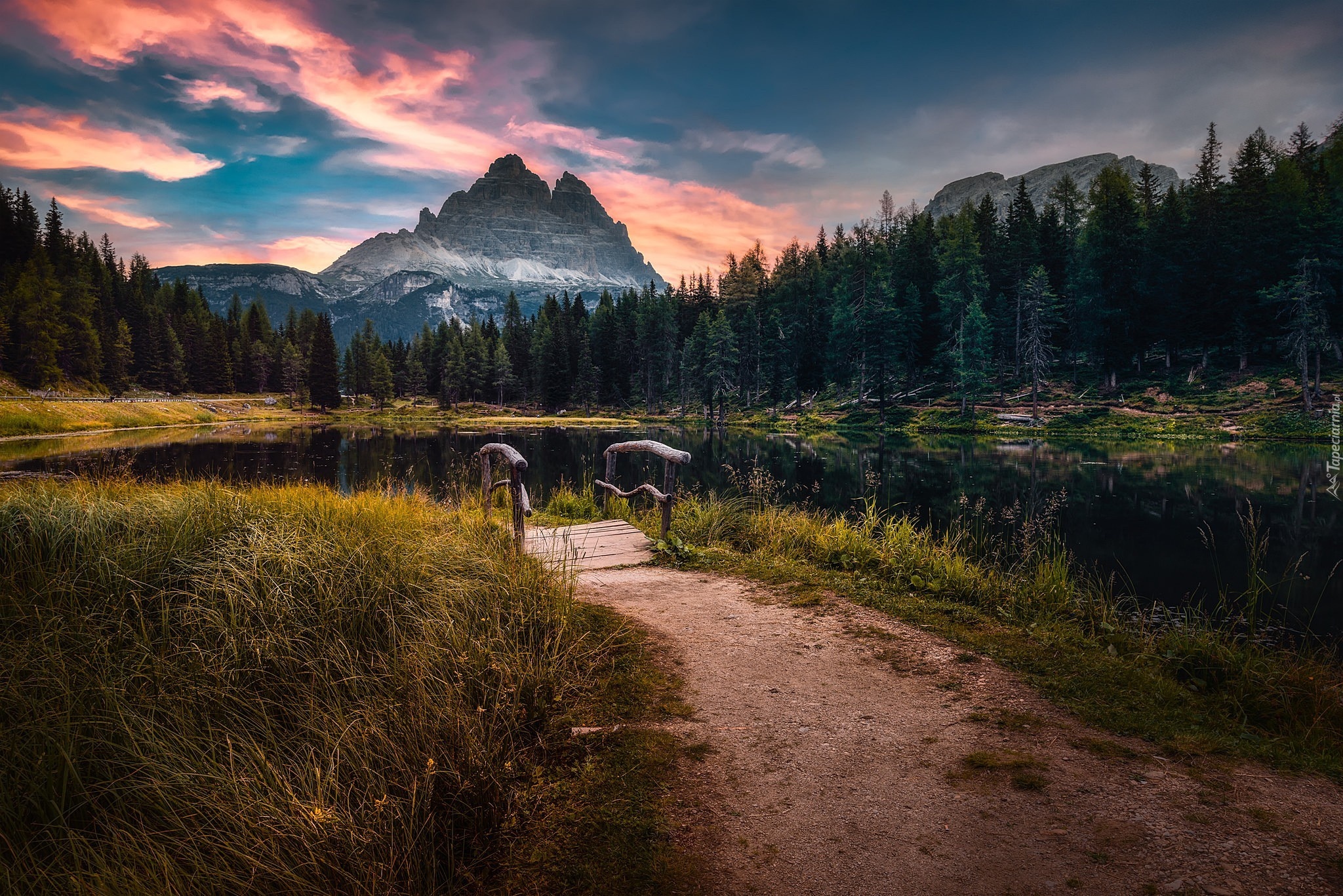 Edytor tapety: Mostek nad jeziorem Antorno Lake we włoskich Dolomitach