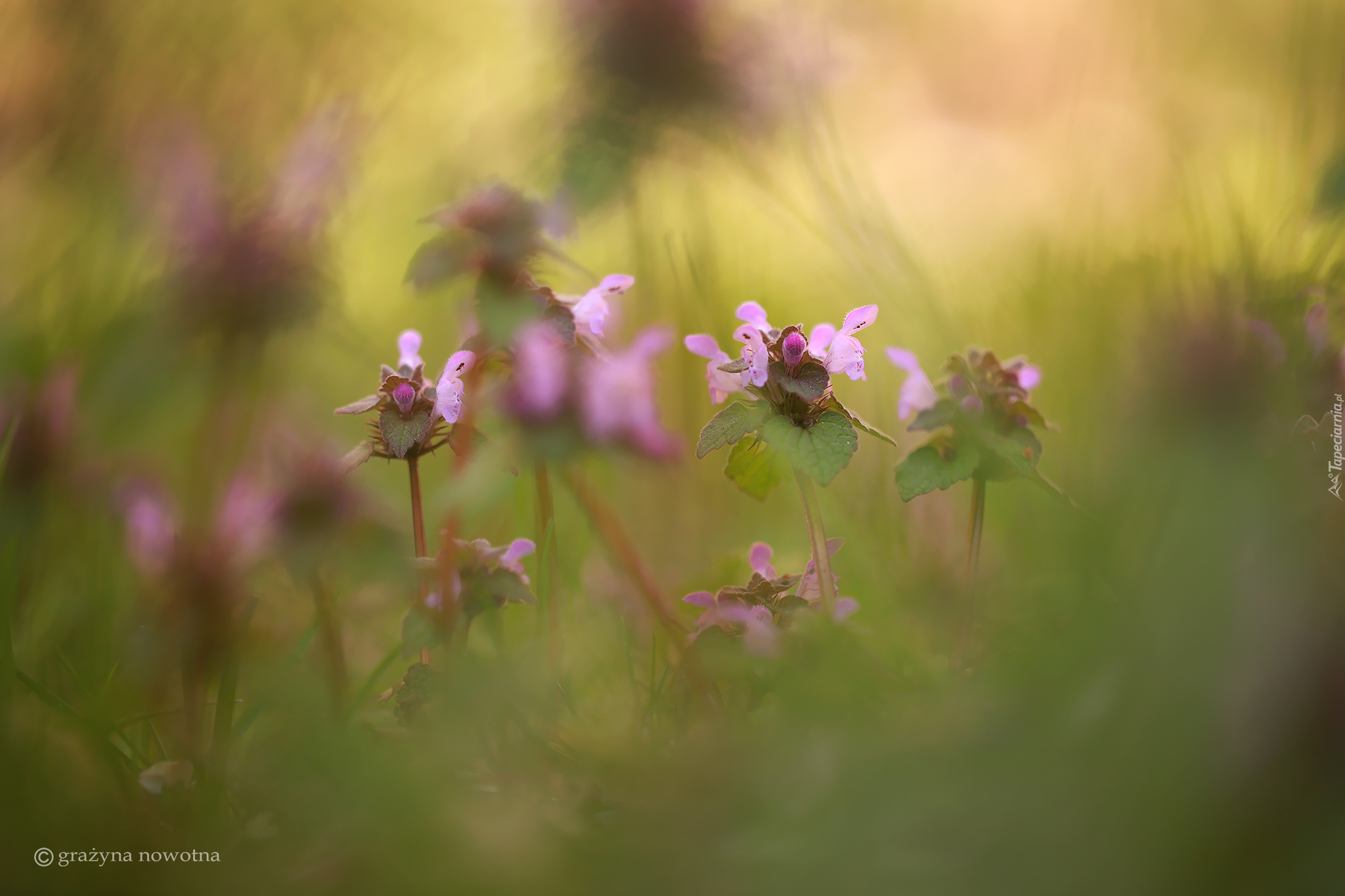 Edytor tapety: Kwiaty jasnoty purpurowej w rozmyciu