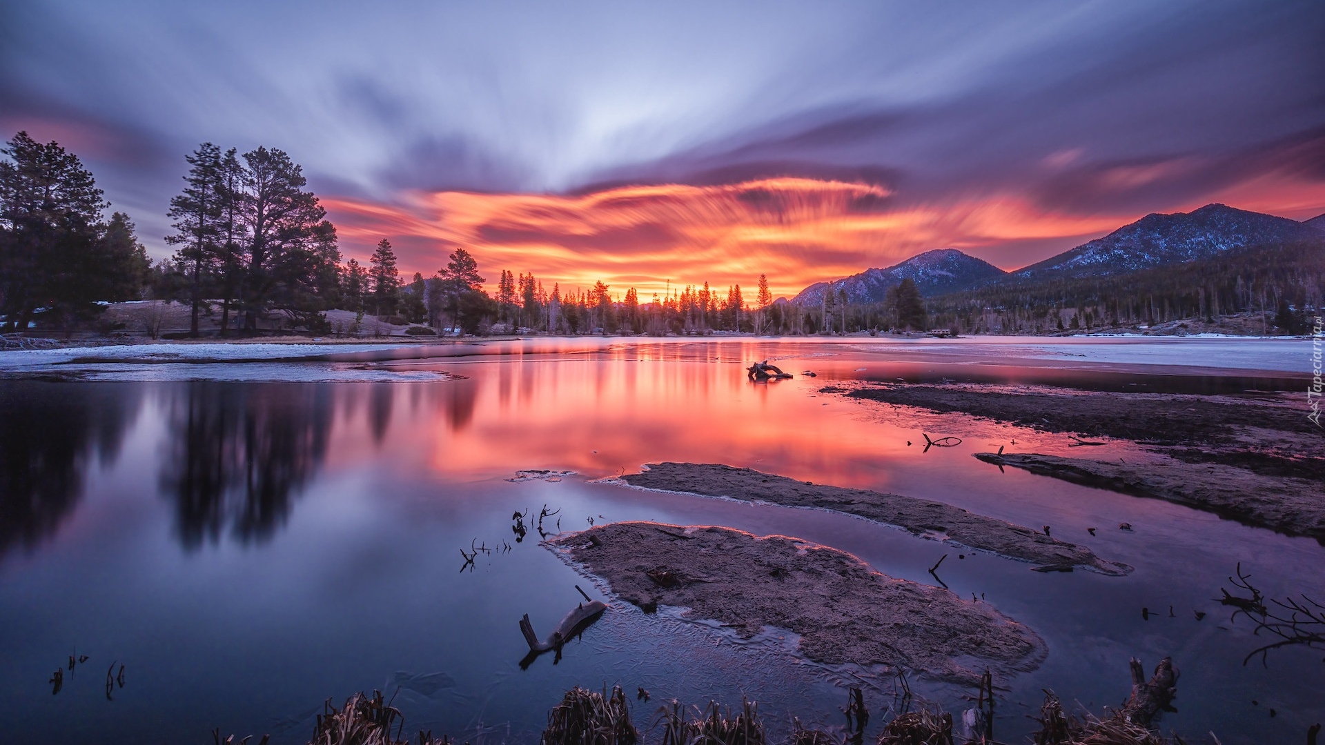 Edytor tapety: Malowniczy wschód słońca nad jeziorem Spraque Lake