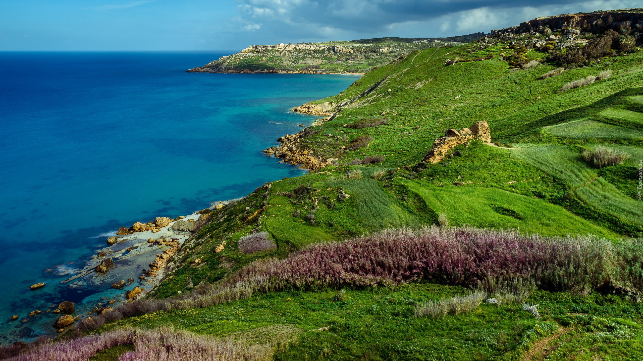 Edytor tapety: Zielone łąki na wybrzeżu morza