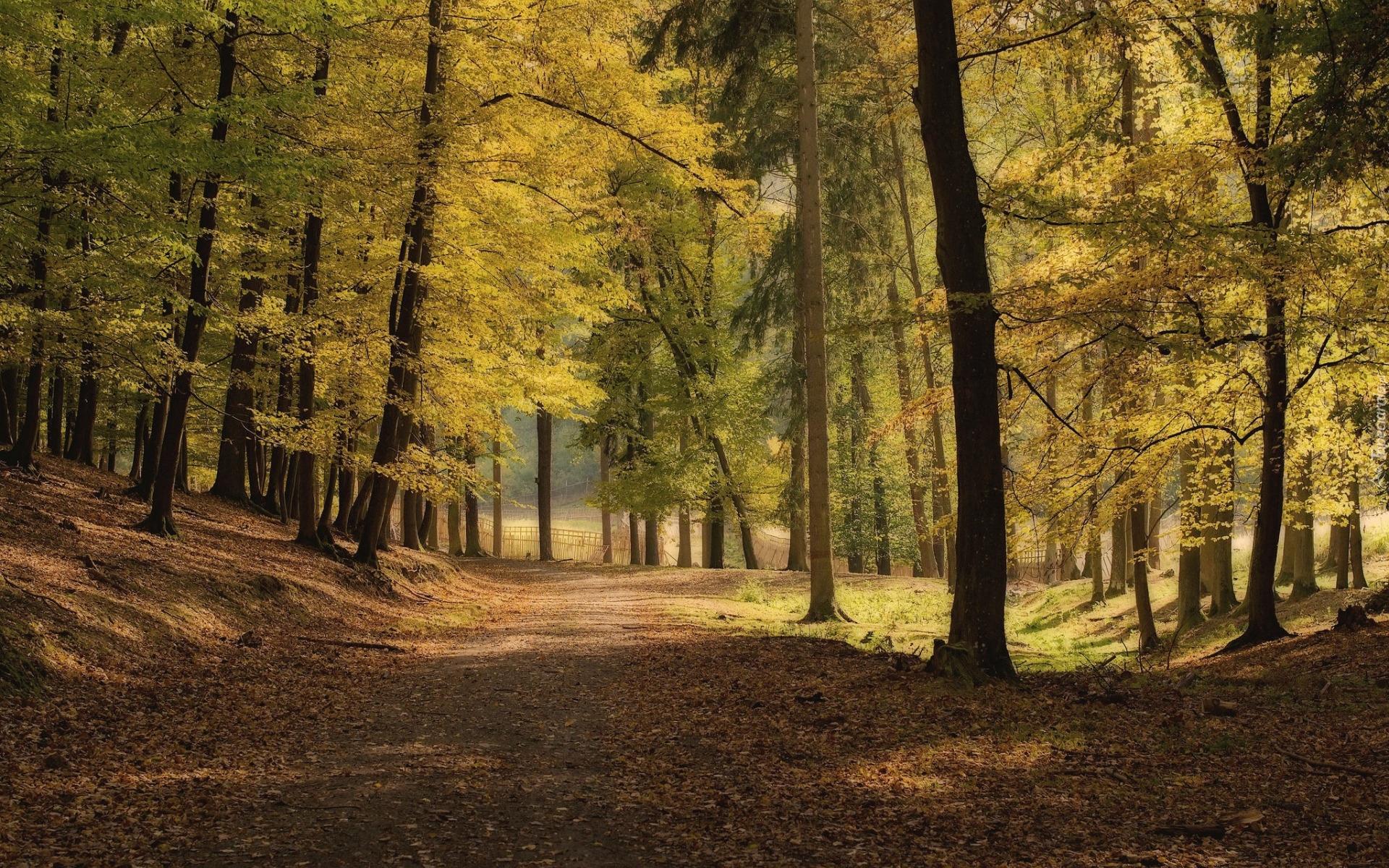Edytor tapety: Pożółkłe drzewa przy drodze w parku