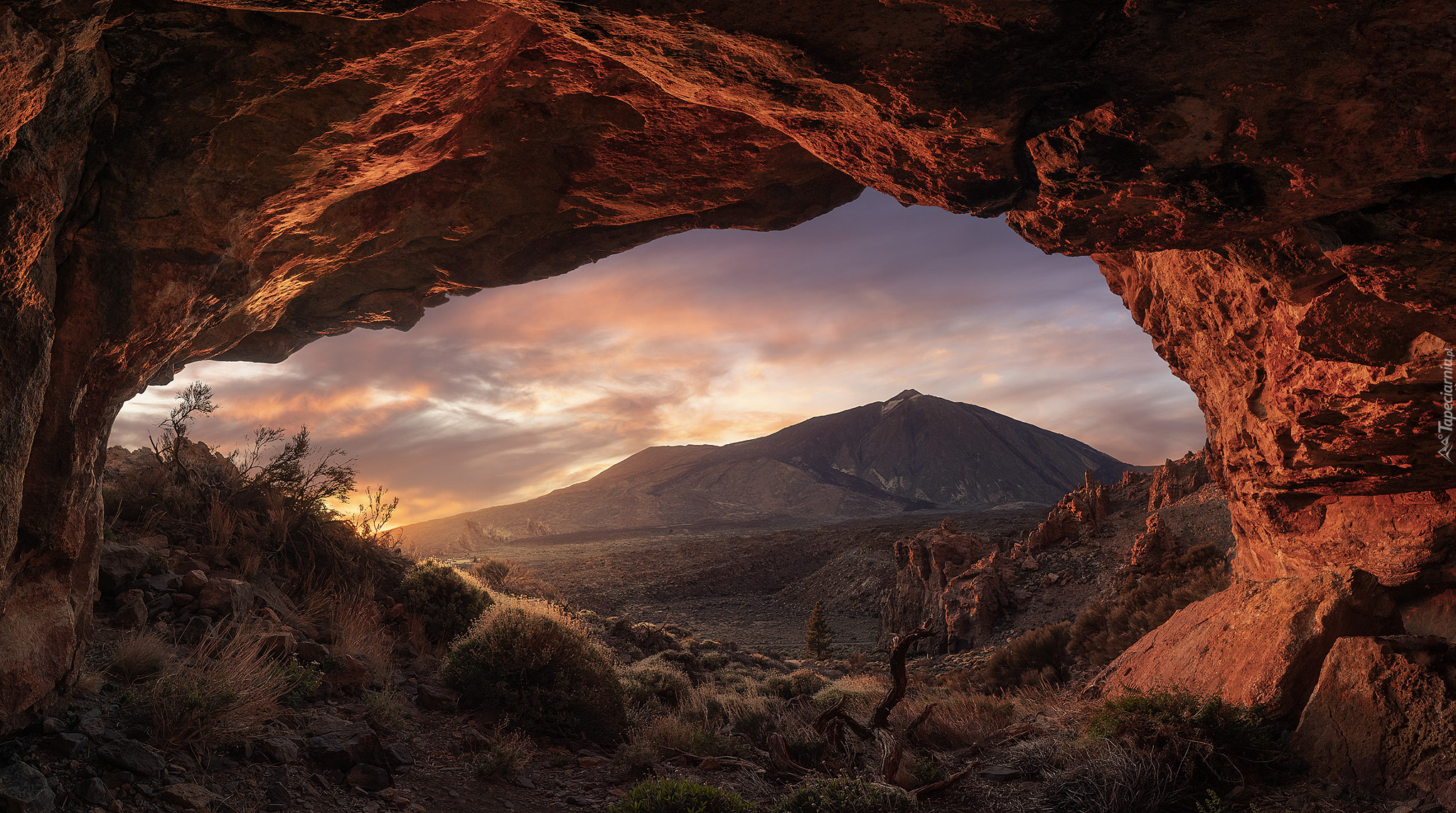 Edytor tapety: Widok z jaskini na górę Teide na Teneryfie