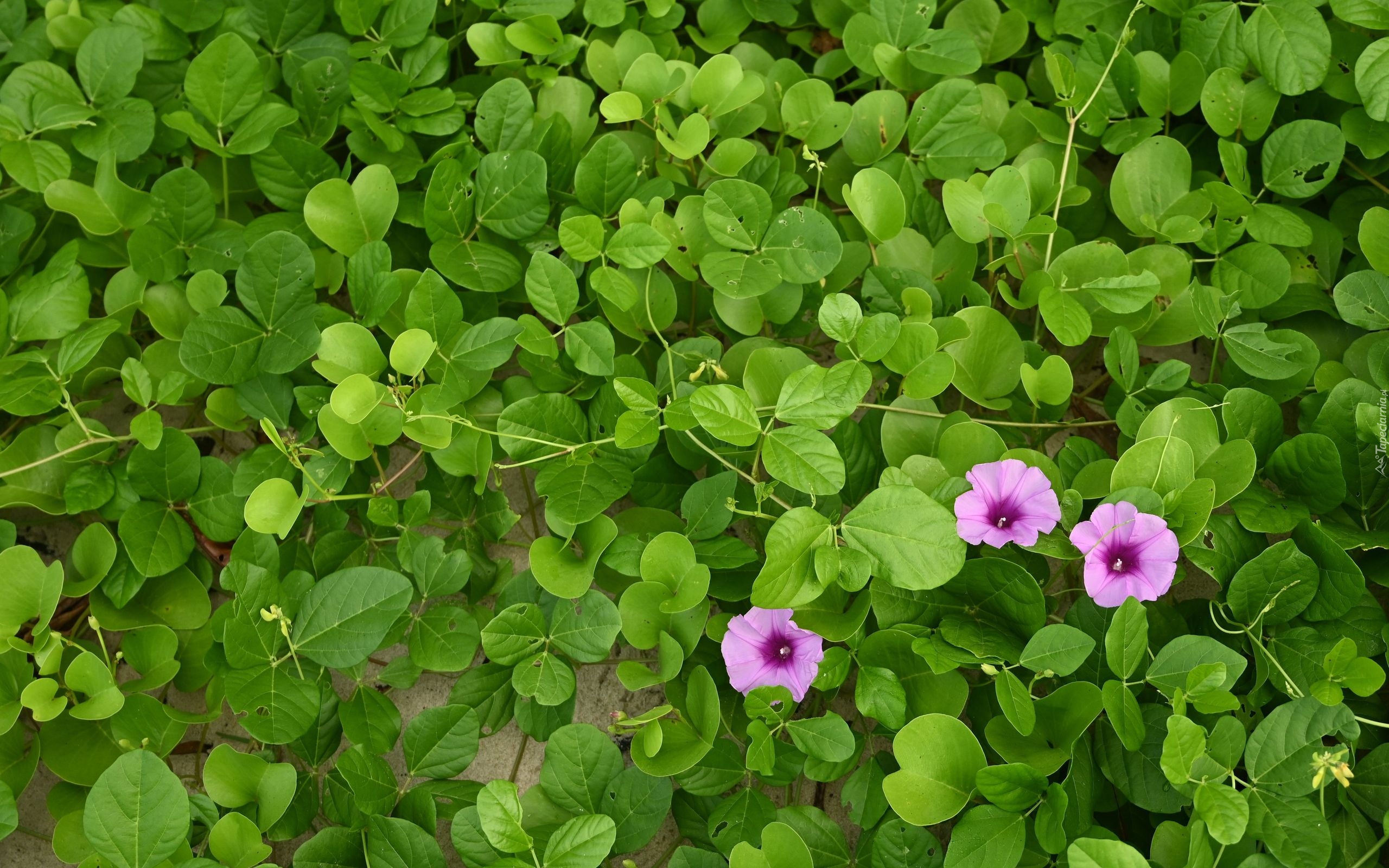 Edytor tapety: Trzy powoje w zielonych liściach