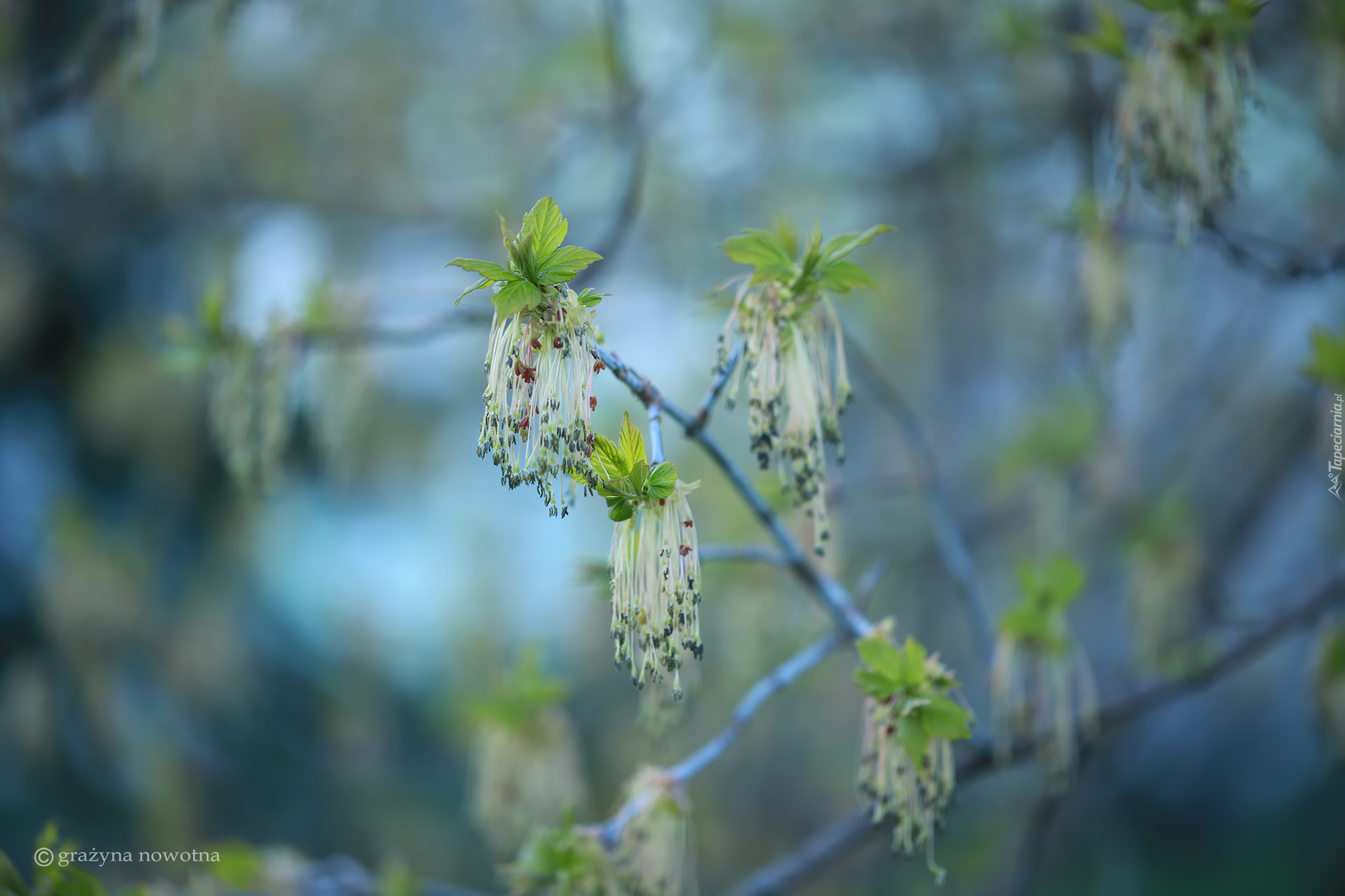 Edytor tapety: Kwiatostany i młode listki klonu jesionolistnego