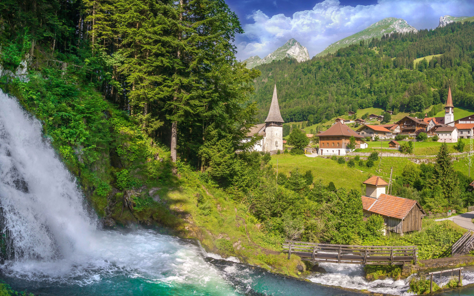 Edytor tapety: Wodospad Jaun na rzece Jaunbach w Szwajcarii