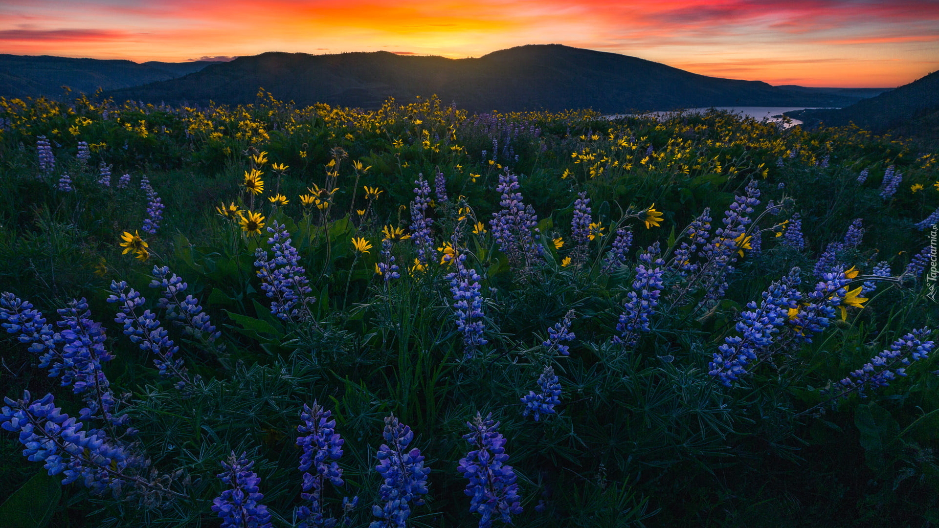 Edytor tapety: Balsamorhizy i łubiny na łące