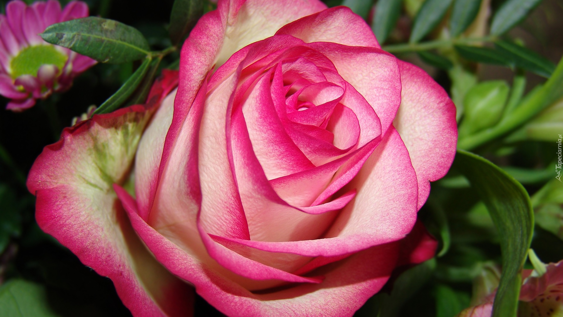 Edytor tapety: Róża z biało-różowymi płatkami